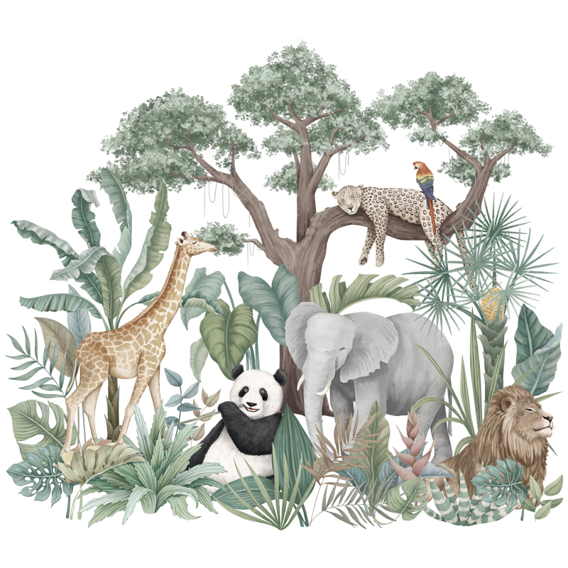 Decal dán tường Vườn thú uyển chuyển có màu sắc tươi sáng, vui nhộn. Decal với các hoạ tiết nhân vật hoạt hình, đem lại cảm giác như những người bạn thân thiết của bé ngay trong