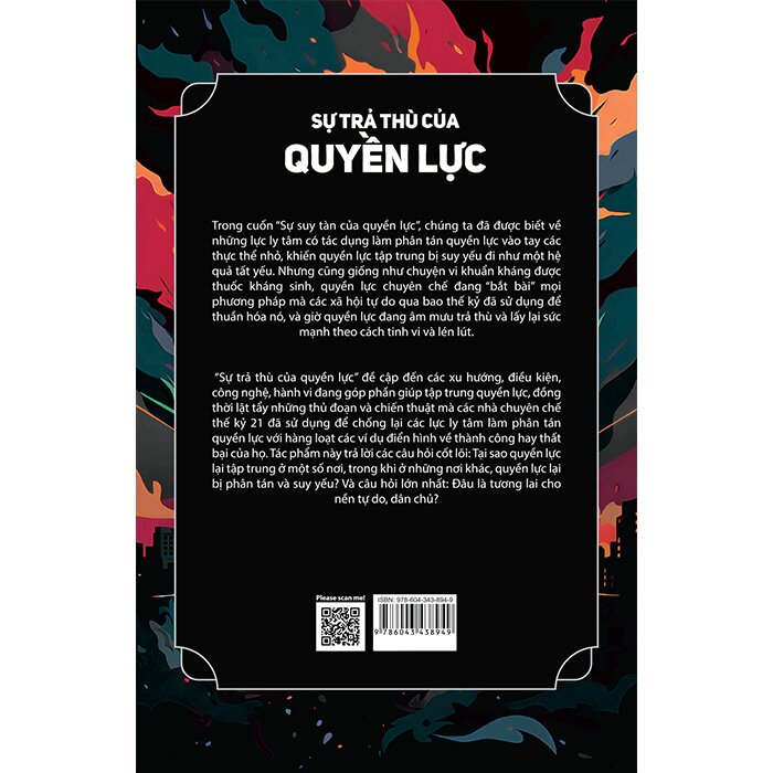 “Sự trả thù của quyền lực” đề cập đến các xu hướng, điều kiện, công nghệ, hành vi đang góp phần giúp tập trung quyền lực, đồng thời lật tẩy những thủ đoạn và chiến thuật mà các nhà chuyên chế thế kỷ 21 đ-ã s-ử dụ-ng để chống lại các lực ly tâm làm phân tán quyền lực với hàng loạt các ví dụ điển hình về thành công hay thất bại của họ. Tác phẩm này trả lời các câu hỏi cốt lõi: Tại sao quyền lực lại tập trung ở một số nơi, trong khi ở những nơi khác, quyền lực lại bị phân tán và suy yếu?
