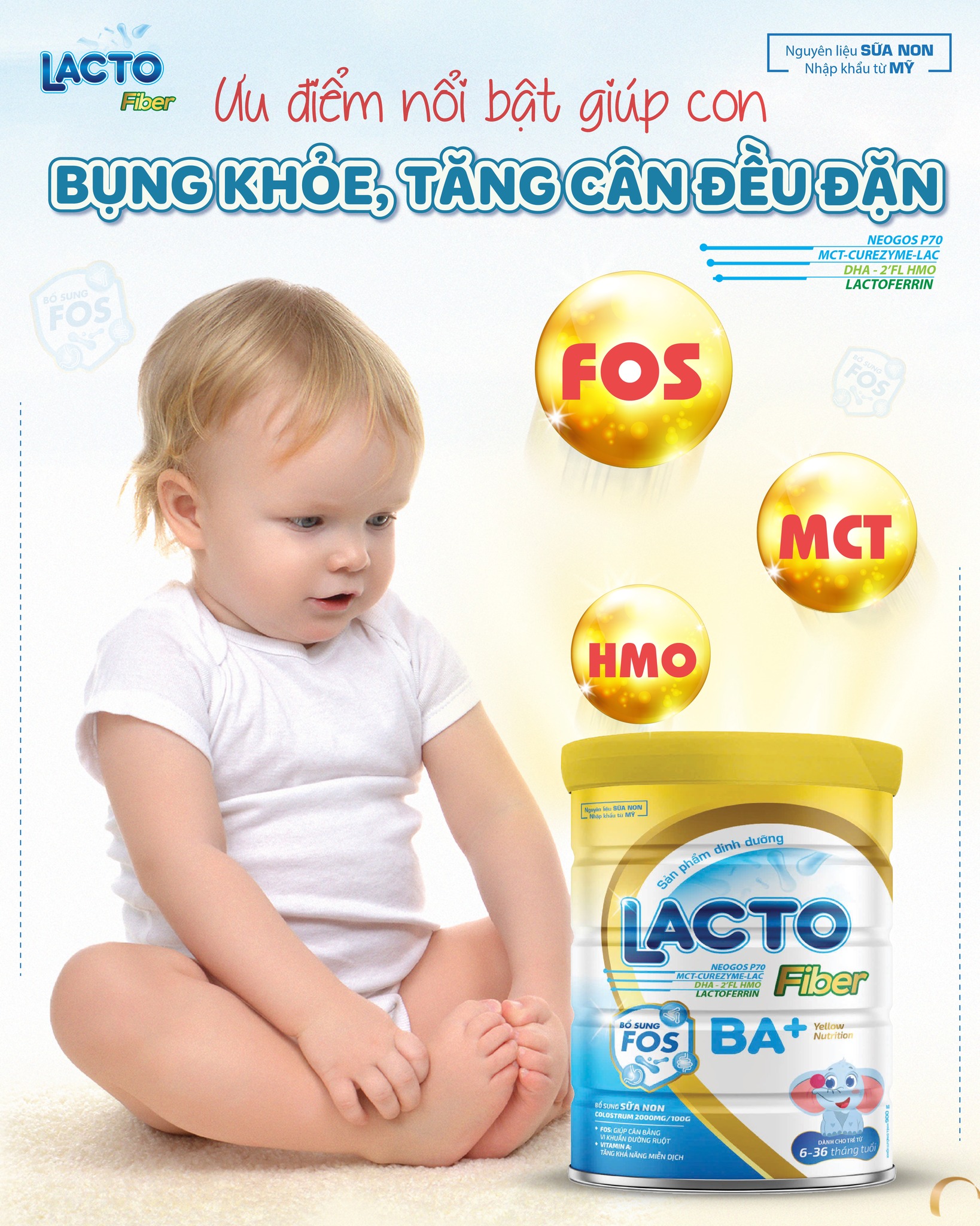 Sữa non chứa kháng thể tự nhiên, cung cấp bảo vệ toàn diện cho trẻ. Vậy nên, Sản phẩm này giúp trẻ phát triển toàn diện và khỏe mạnh, hỗ trợ tiêu hóa tốt hơn. Lacto Fiber BA+ được đóng gói tiện lợi, dễ sử dụng và bảo quản.