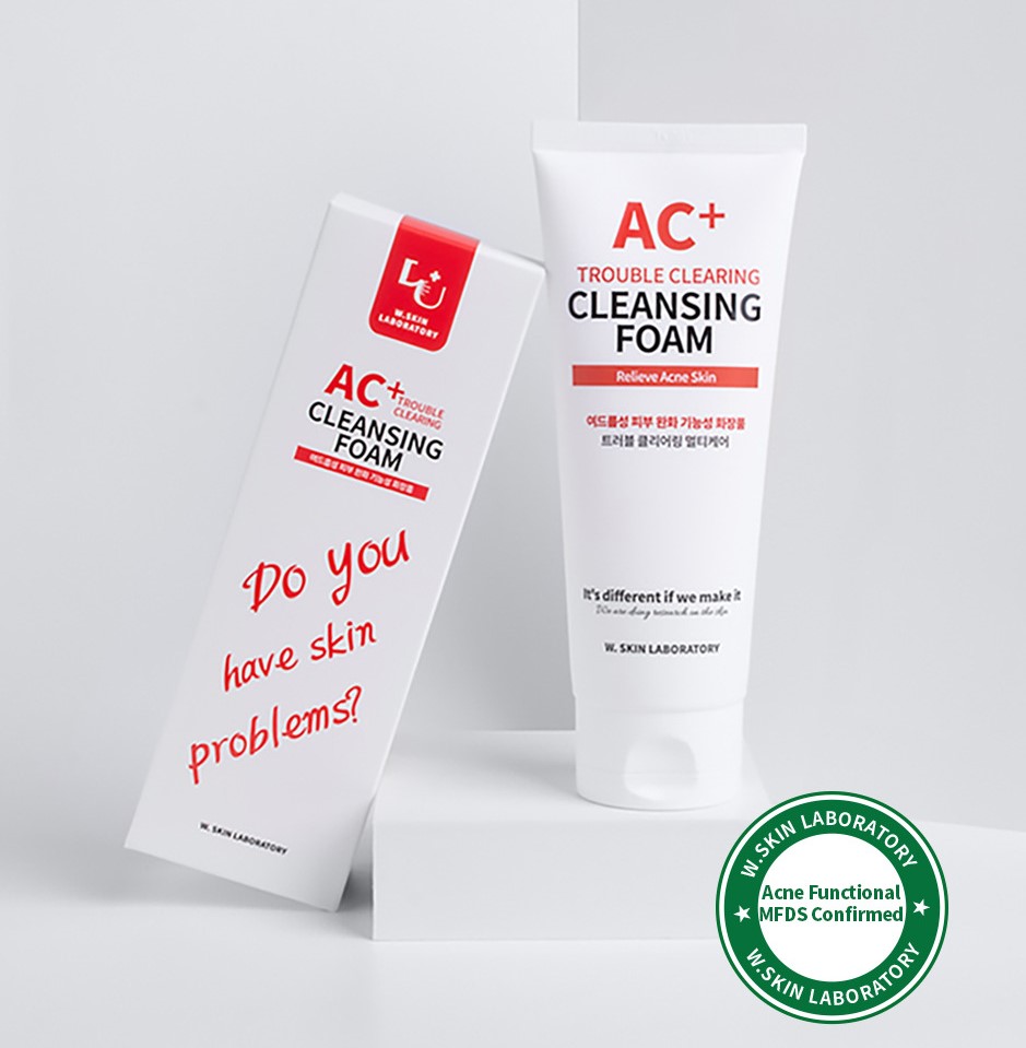 ✨Sữa rửa mặt cho da dầu mụn W.Skin Laboratory AC+ TROUBLE CLEARING CLEANSING FOAM (150ml) xuất xứ Hàn Quốc {Có tem phụ nhập khẩu chính ngạch}