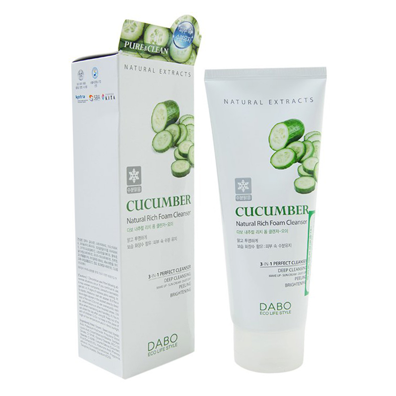 - Sữa Rửa Mặt Dabo Dưa Leo 3-In-1 8809351955975 có nhiều tác dụng đối với da mặt như giúp se khít lỗ chân lông, bởi vì chứa nhiều loại vitamin tốt cho da như C, E, các nhóm vitamin C và carotene, kali, chất sắt…