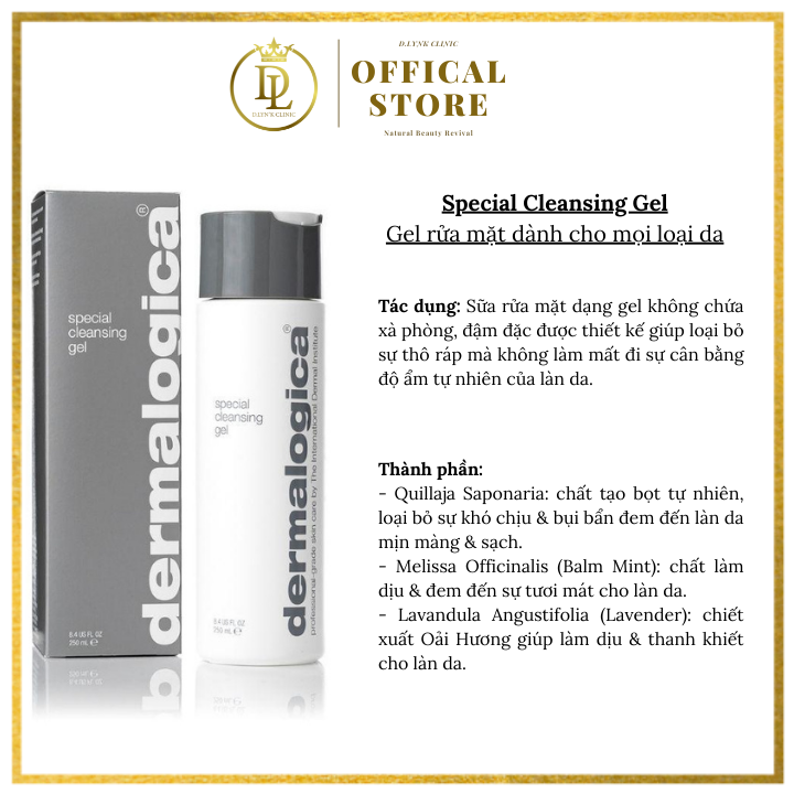 Mua tại TiktokSữa rửa mặt dạng gel Dermalogica Special Cleansing Gel 50ml - 250ml - 500ml dành cho mọi loại da Dermalogica Special Cleansing Gel là sữa rửa mặt dạng gel đậm đặc, không chứa xà phòng hỗ trợ làm giảm bã nhờn dư thừa, bụi bẩn mà không làm mất đi sự cân bằng độ ẩm tự nhiên của da, đồng thời nuôi dưỡng da mềm mại, mịn màng từ các chiết xuất thiên nhiên dịu nhẹ, lành tính, không gây kích ứng da THÔNG TIN SẢN PHẨM