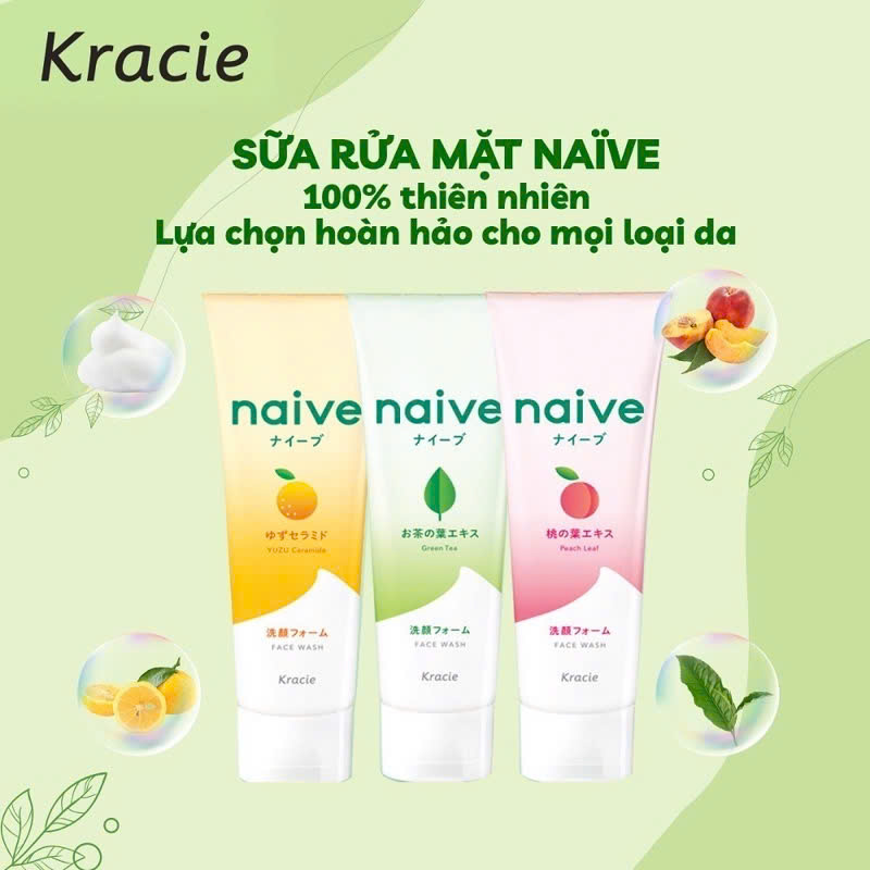SỮA RỬA MẶT NAIVE LÁ ĐÀO/ TRÀ XANH / YUZU CERAMIDE