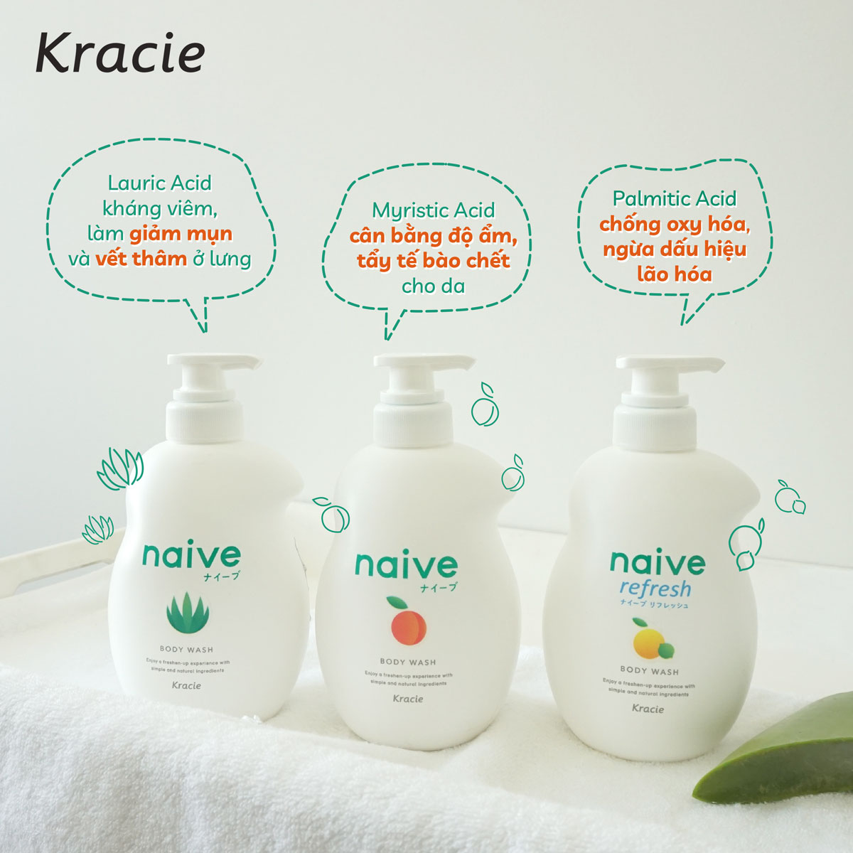 Sữa Tắm Hương Bưởi Thư Giãn Kracie Naive Body Wash (Refresh) 530ml Thể Tích Thực: 530 ml Số Lô: In trên sản phẩm Mã Vạch: 4901417169532 Xuất xứ: Nhật Bản Sữa tắm tạo bọt với thành phần làm sạch 100% chiết xuất thực vật nguyên chất như:Nước Bưởi ép , Bùn biển giàu khoáng chất.. kết hợp công thức làm sạch sâu giúp làm sạch bụi bẩn , bã nhờn từ sâu lỗ chân lông , đồng thời Bưởi còn hỗ trợ ngăn ngừa mủi cơ thể ,giúp da trở nên sáng khỏe, mịn màng, và luôn căng đầy sức sống hơn .Hương Bưởi dịu nhẹ , phù hợp cho mọi loại da ngay cả làn da mỏng manh của trẻ nhỏ *DÀNH CHO LÀN DA CỦA CẢ GIA ĐÌNH VỚI LỚP BỌT NHẸ NHÀNG LÀM SẠCH DA. Công Dụng : Sữa tắm làm sạch bụi bẩn và tế bào da chết có trên da, giúp dưỡng ẩm sâu và săn chắc da, bảo vệ làn da, giúp da mềm mại, mịn màng, khỏe đẹp. Sản phẩm với mùi hương dễ chịu.. Cách Dùng : Sau khi làm ướt cơ thể cho một lượng vừa phải ra tay tạo bọt rồi massage nhẹ nhàng khắp cơ thể và làm sạch bằng nước. Bảo Quản: Tránh để nơi quá lạnh và ánh nắng trực tiếp vào sản phẩm, để xa tầm tay trẻ em khi không sử dụng. Lưu Ý: Khi dùng nếu có biểu hiện như mẩn ngứa hay có triệu chứng gì bất thường thì ngừng không được sử dụng Thành Phần : Water, Lauric Acid, Myristic Acid, Palmitic Acid, Potassium Hydroxide, Glycerin, Glycol Distearate, Cocamide Methyl Mea, Cocamide Mea, Sodium Laureth Sulfate, Fragrance, Palm Kernelamidopropyl Betaine, Stearic Acid, Sodium Chloride, Tea-Lauroyl Sarcosinate, Hydroxypropyl Methylcellulose, Potassium Chloride, Disodium Edta, Dipropylene Glycol, Butylene Glycol, Polyquaternium-7, Sodium Citrate, Sodium Benzoate, Acetyl Glucosamine, Sea Silt, Kaolin, Citrus Grandis (Grapefruit) Fruit Extract NHÀ SẢN XUẤT: KRACIE HOME PRODUCTS, LTD. NHÀ NHẬP KHẨU VÀ CHỊU TRÁCH NHIỆM ĐƯA SẢN PHẨM RA THỊ TRƯỜNG: CÔNG TY TNHH TM DV HÒA PHÚC