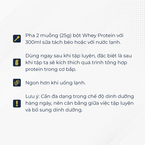 - 22g Protein hấp thụ nhanh giúp phát triển, phục hồi cơ bắp hiệu quả. - 10g EAA, 4.8g BCAA tăng khả năng tổng hợp Protein sau tập, đồng thời giúp phục hồi và chống