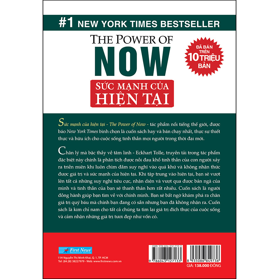Sức mạnh của hiện tại - The Power of now - tác phẩm nổi tiếng thế giới, được thời báo New York Times bình chọn là cuốn sách hay và bán chạy nhất, thực sự thiết thực và hữu ích cho cuộc sống tinh thần mọi người trong thời đại mới. Chân lý mà bậc thầy về tâm linh - Eckhart Tolle, truyền tải trong tác phẩm đặc biệt này chính là phân tích được nỗi đau khổ tinh thần của con người xảy ra triền miên khi luôn chìm đắm suy nghĩ vào quá khứ và không nhận thức được giá trị và sức mạnh của Hiện tại. Khi tập trung vào hiện tại, bạn sẽ vượt lên tất cả những suy nghĩ tiêu cực, tìm được bản ngã của mình và tinh thần của bạn sẽ thanh thản hơn rất nhiều.
