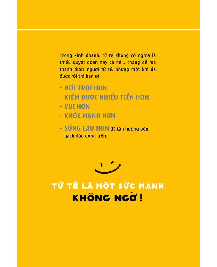 Sức Mạnh Của Sự Tử Tế ✩ Hai tác giả là những người thành công trong lĩnh vực quảng cáo chỉ nhờ vào một triết lý đơn giản nhưng đầy quyền lực: tử tế. Trong khi rất nhiều công ty hoạt động theo phương châm lấn át, tiêu diệt lẫn nhau thì Kaplan Thaler Group thành công nhờ vào chocolate và hoa hồng. Trong quyển sách này, bằng những kinh nghiệm của chính mình, và câu chuyện của những người khác, những doanh nghiệp khác, họ giải thích lý do vì sao những người tử tế không chỉ sống lâu hơn, sống khỏe hơn mà còn thành công hơn và kiếm được nhiều tiền hơn. ✩ "Sức Mạnh Của Sự Tử tế là cuốn sách nhỏ nhưng nội công lớn, giúp người đọc khai phá tiềm lực nội tại ở bản thân bằng cách đánh thức bản chất lương thiện của con người. Lời văn dịch dí dỏm, tác giả kể lại những câu chuyện đã trải nghiệm, những cái “hay không bằng hên” mà “hên” là nhờ mình đã tử tế với với những người dưng, mà sau đó những người tưởng chừng như là người dưng này đã trở thành quý nhân, đóng vai trò quan trọng trong cuộc đời tác giả. ✩ Với tiêu chí nhiều cố gắng nhỏ liên tục sẽ tạo nên một thay đổi lớn ,sách kèm theo những bài thực hành rất thiết thực và dễ làm như là cười với mọi người, và ấn tượng nhất là bài thực hành tập đóng phim, nhưng vào vai phụ – một cách diễn đạt rất hay mà tôi chưa từng thấy ở bất cứ quyển sách nào, rất đáng để học hỏi." độc giả Ngô Lai nhận xét