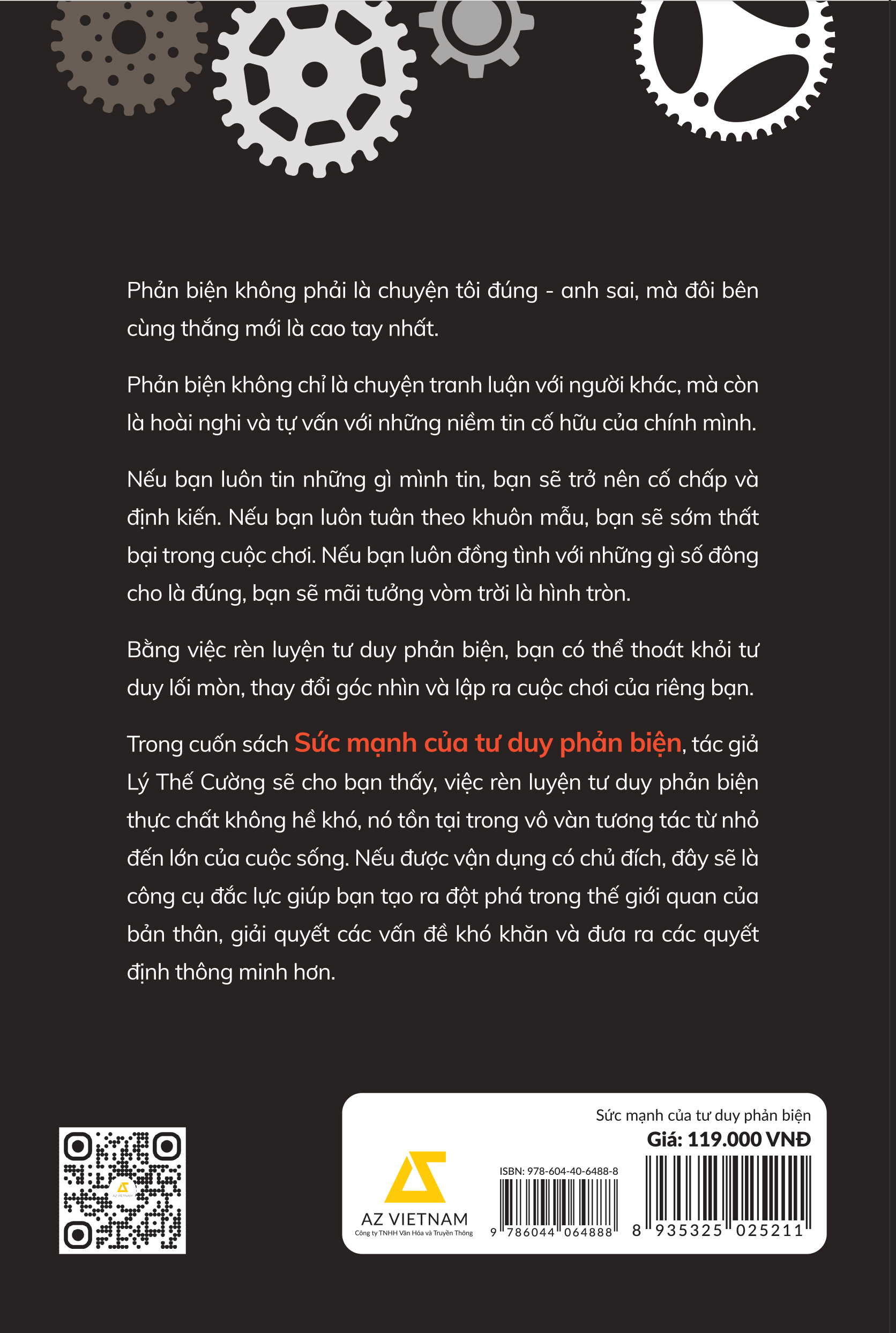 Trong cuốn sách Sức mạnh của tư duy phản biện, tác giả Lý Thế Cường sẽ cho bạn thấy, việc rèn luyện tư duy phản biện thực chất không hề khó, nó tồn tại trong vô vàn tương tác từ nhỏ đến lớn của cuộc sống. Nếu được vận dụng có chủ đích, đây sẽ là công cụ đắc lực giúp bạn tạo ra đột phá trong thế giới quan của bản thân, giải quyết các vấn đề khó khăn và đưa ra các quyết định thông minh hơn