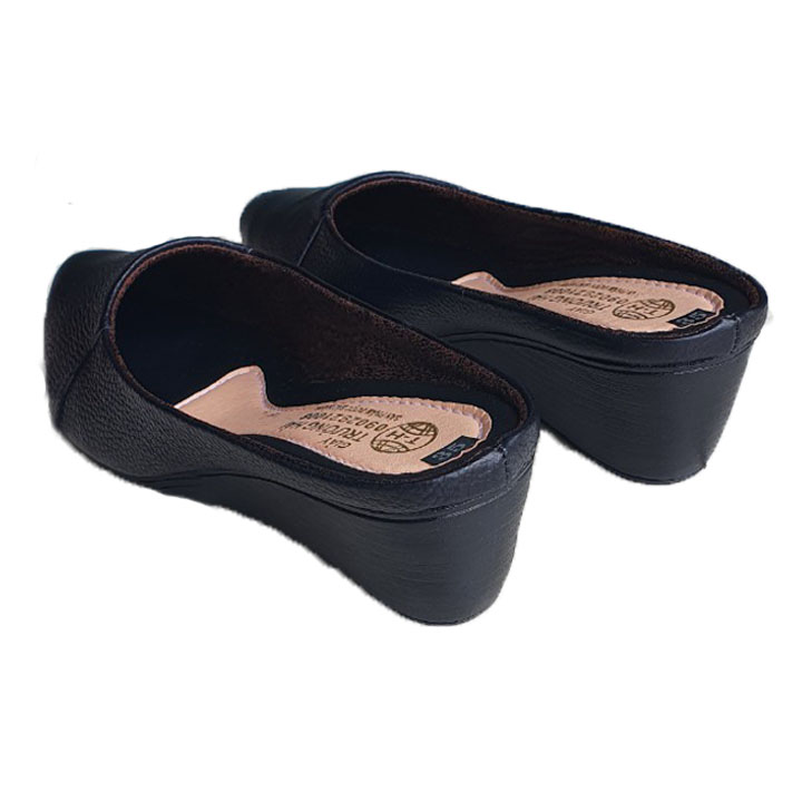 Giày Sục Nữ Giày Đế Xuồng Da Bò Thật Cực Mềm Gót Cao 5cm Evelynv 5P1316 (Đen)