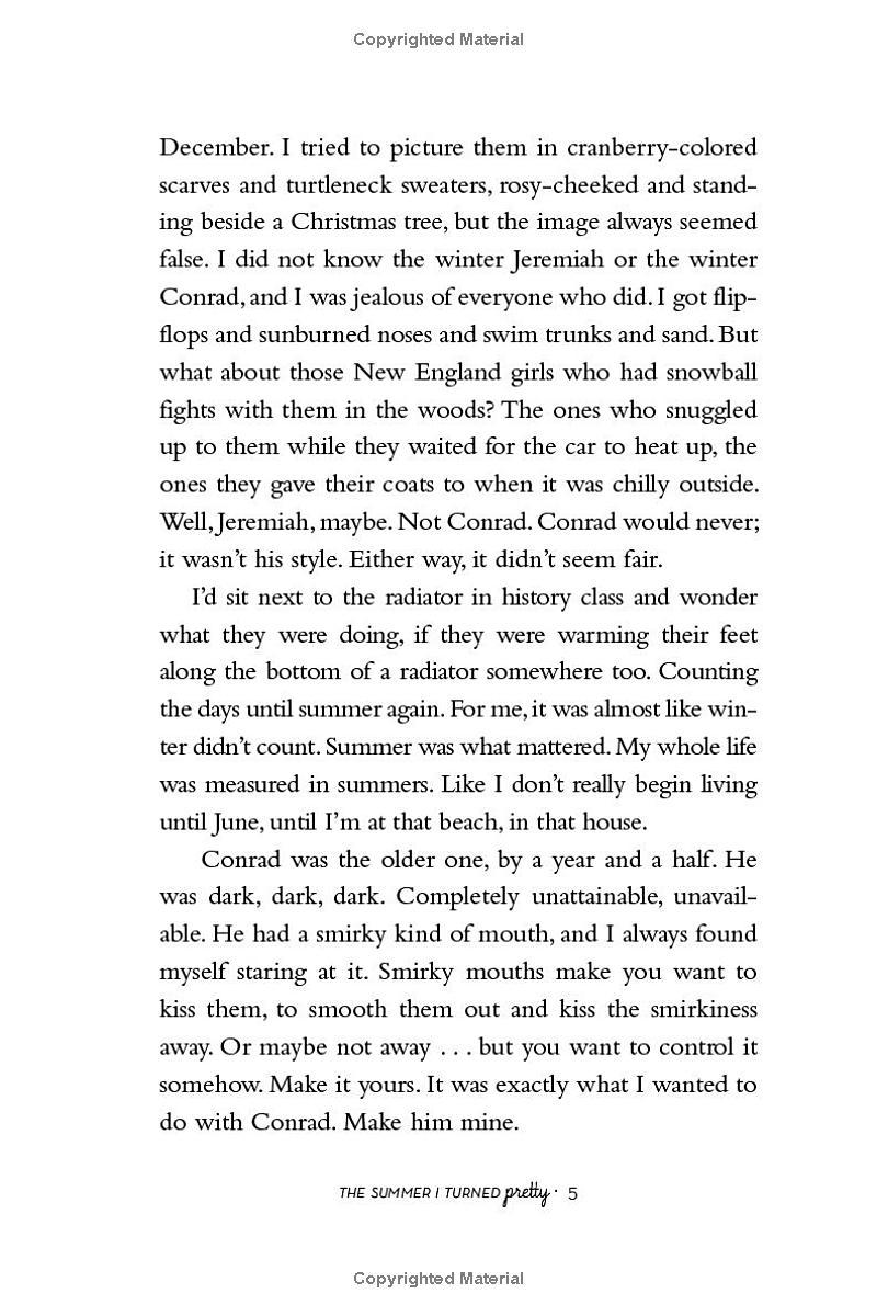 Belly measures her life in summers. Everything good, everything magical happens between the months of June and August. Winters are simply a time to count the weeks until the next summer, a place away from the beach house, away from Susannah, and most importantly, away from Jeremiah and Conrad. They are the boys that Belly has known since her very first summer—they have been her brother figures, her crushes, and everything in between. But one summer, one wonderful and terrible summer, the more everything changes, the more it all ends up just the way it should have been all along.