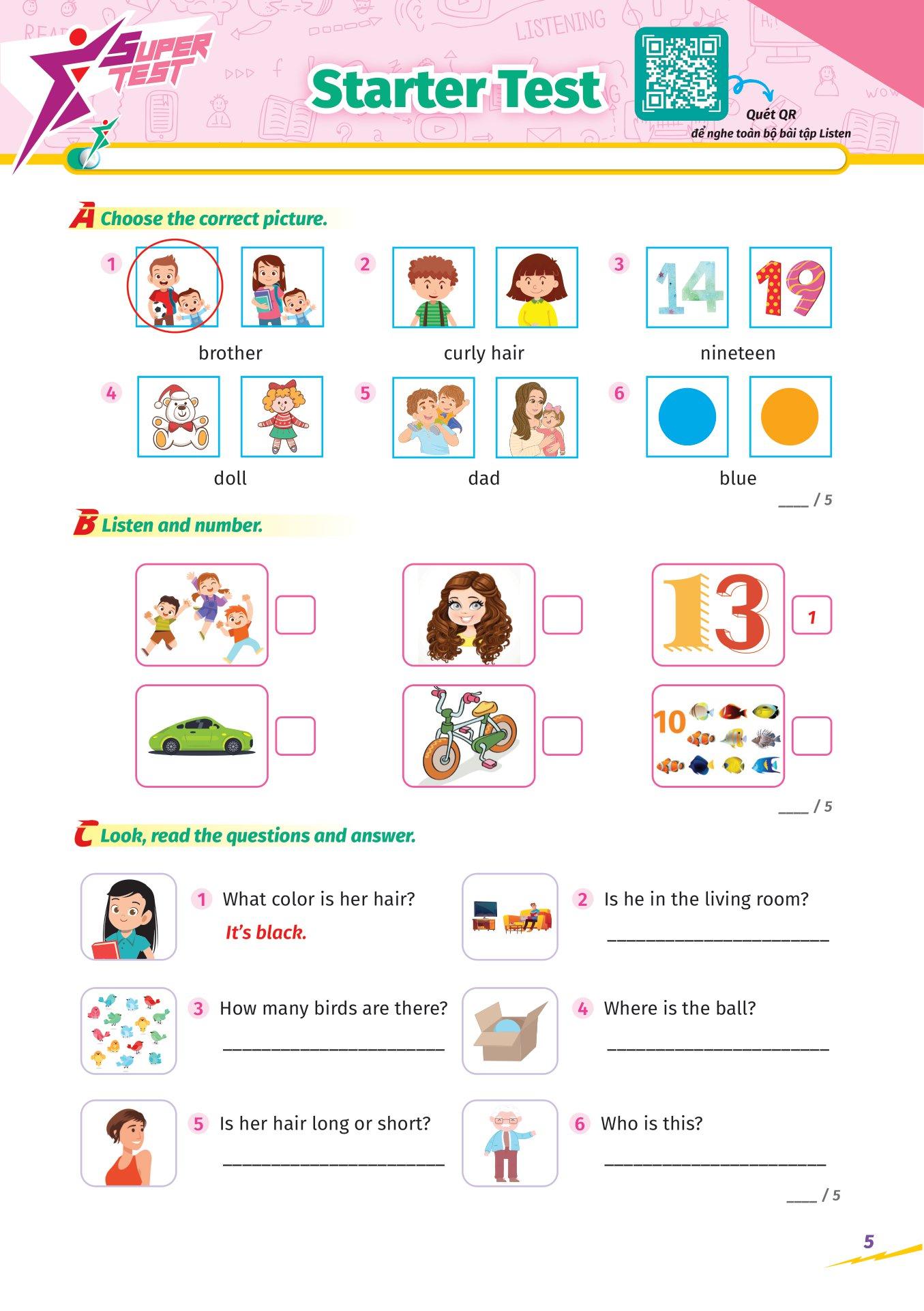 Với Bộ sách Super Test – Đề kiểm tra nhanh Tiếng Anh cho học sinh, bố mẹ sẽ giúp con tiến bộ từng ngày, tự tin với khả năng ngôn ngữ của m.ình khi ôn luyện Tiếng Anh bởi các bài tập về 4 kỹ năng: Nghe – Nói – Đọc – Viết được liên kết với nhau theo logic của bài học.