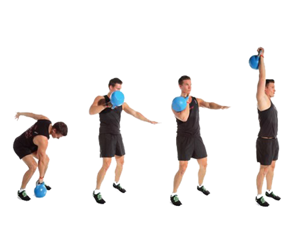 - Trong động tác 1 này, người tập đứng ở tư thế hai bàn chân rộng hơn hông một chút và giữ tạ kettlebell bằng hai tay trên vai. Đẩy và hạ hông ra sau vào tư thế ngồi xổm Cùng lúc, đẩy gót chân vào tư thế đứng và đẩy thẳng cánh tay lên quá đầu Sau đó, người tập sẽ ngồi xổm khi hạ tạ xuống vai trái .