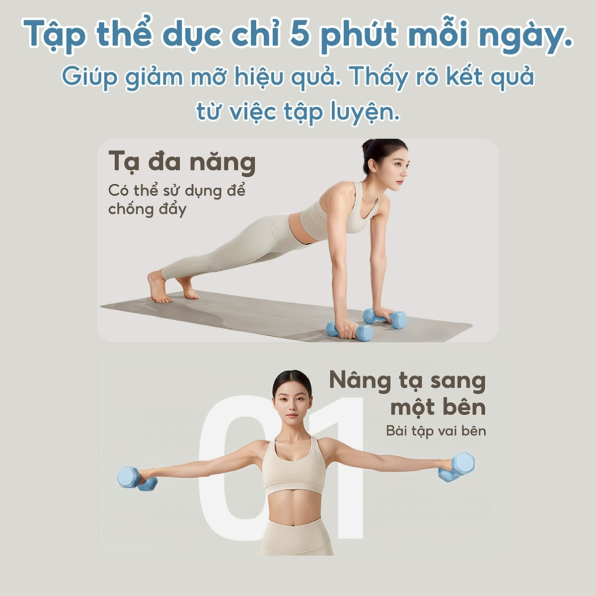 Bài tập tạ tay tại nhà cho nữ: vai vuông, lưng mảnh, tay thon gọn #xuhuong #tadon