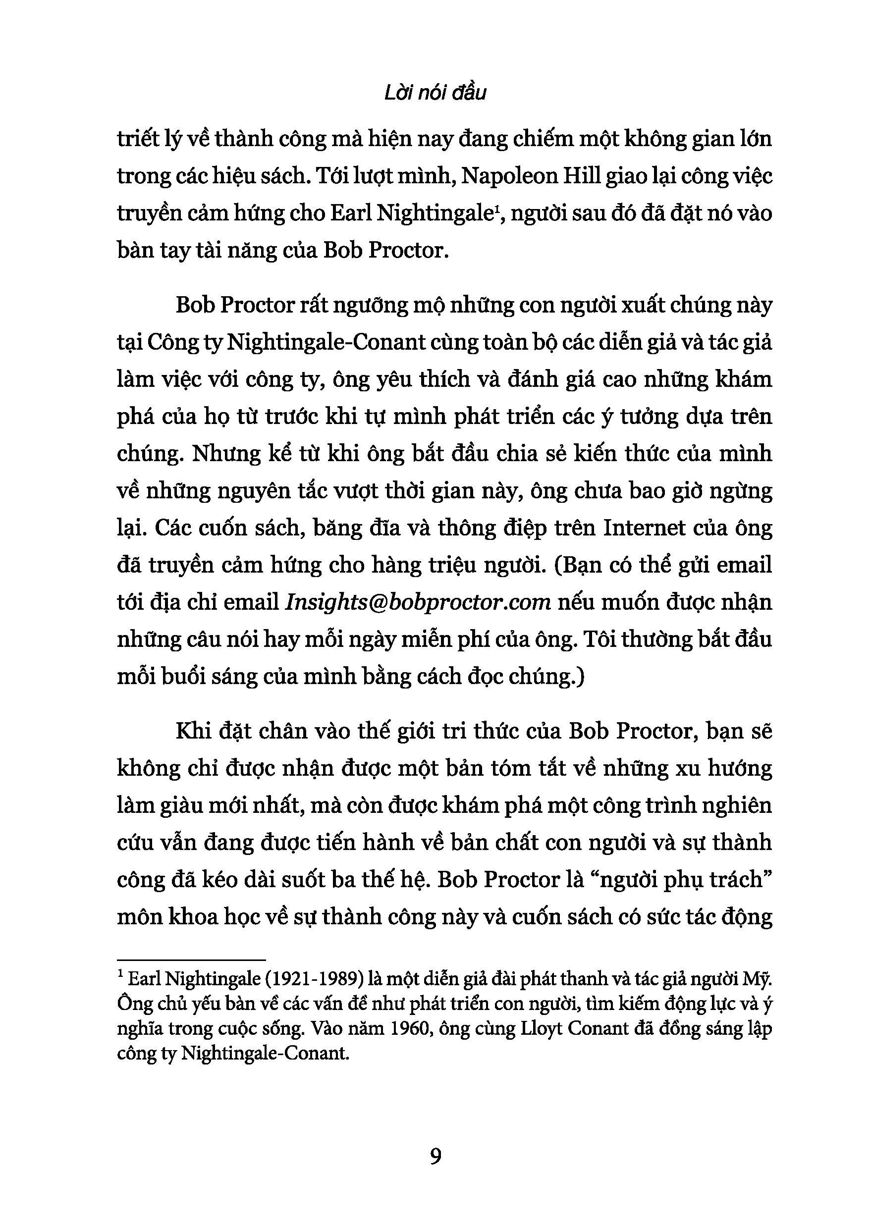 Bob Proctor nổi tiếng khắp thế giới với tư cách là nhà tư tưởng bậc thầy về phát triển cá nhân. Không ai có thể sánh bằng ông trong việc hệ thống hoá cuộc sống. Bob Proctor xâu chuỗi chúng lại với nhau theo những trật tự tinh tế, ý tưởng này dẫn đến ý tưởng tiếp theo một cách logic cho đến khi xây dựng được toàn bộ hệ thống.