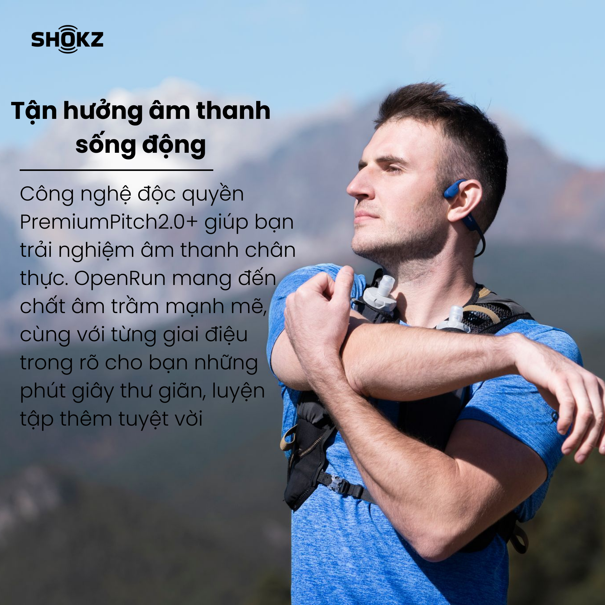 Tai Nghe Bluetooth Thể Thao Dẫn Truyền Âm Thanh Qua Xương SHOKZ OPEN RUN MINI S803 Màu Xanh - Bảo hành 2 năm Vì sao nên chọn tai nghe Shokz? Sử dụng công nghệ dẫn