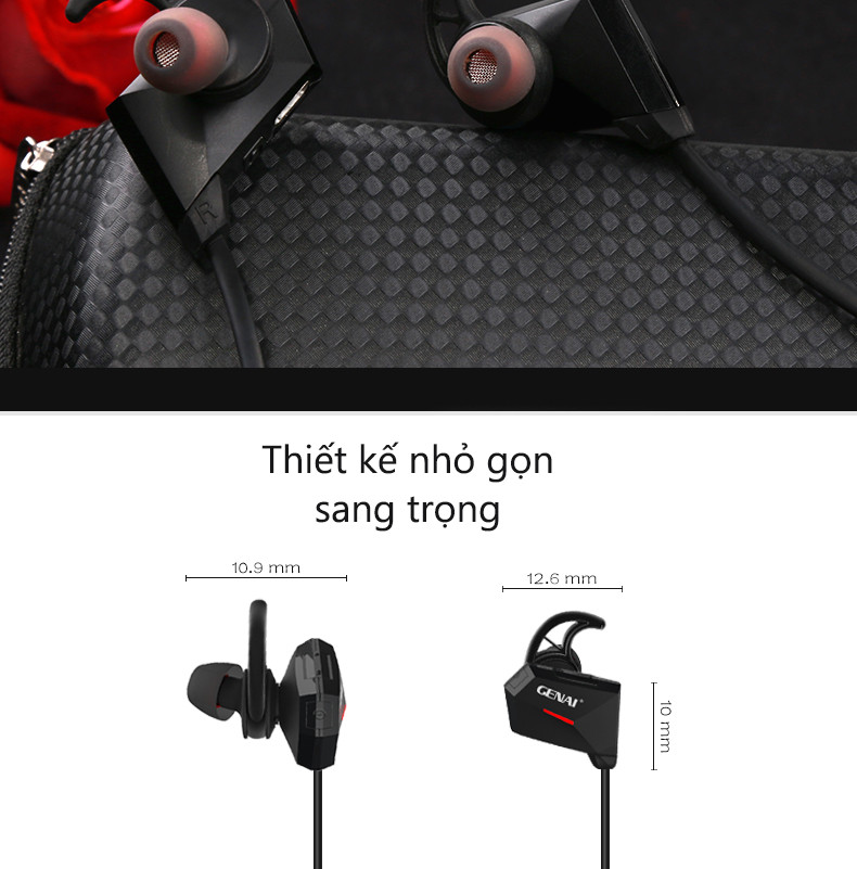 Tai nghe bluetooth vòng cổ thể thao Genai Sport 7 là dòng tai nghe cao cấp, kích thước nhỏ gọn sang trọng góp phần thể hiện sự năng động của bạn. Kết hợp thiết kế vây cá cao su nhét vành tai chắc chắn, sẽ không có tình trạng rơi rớt khi đeo như những dòng tai nghe thông thường