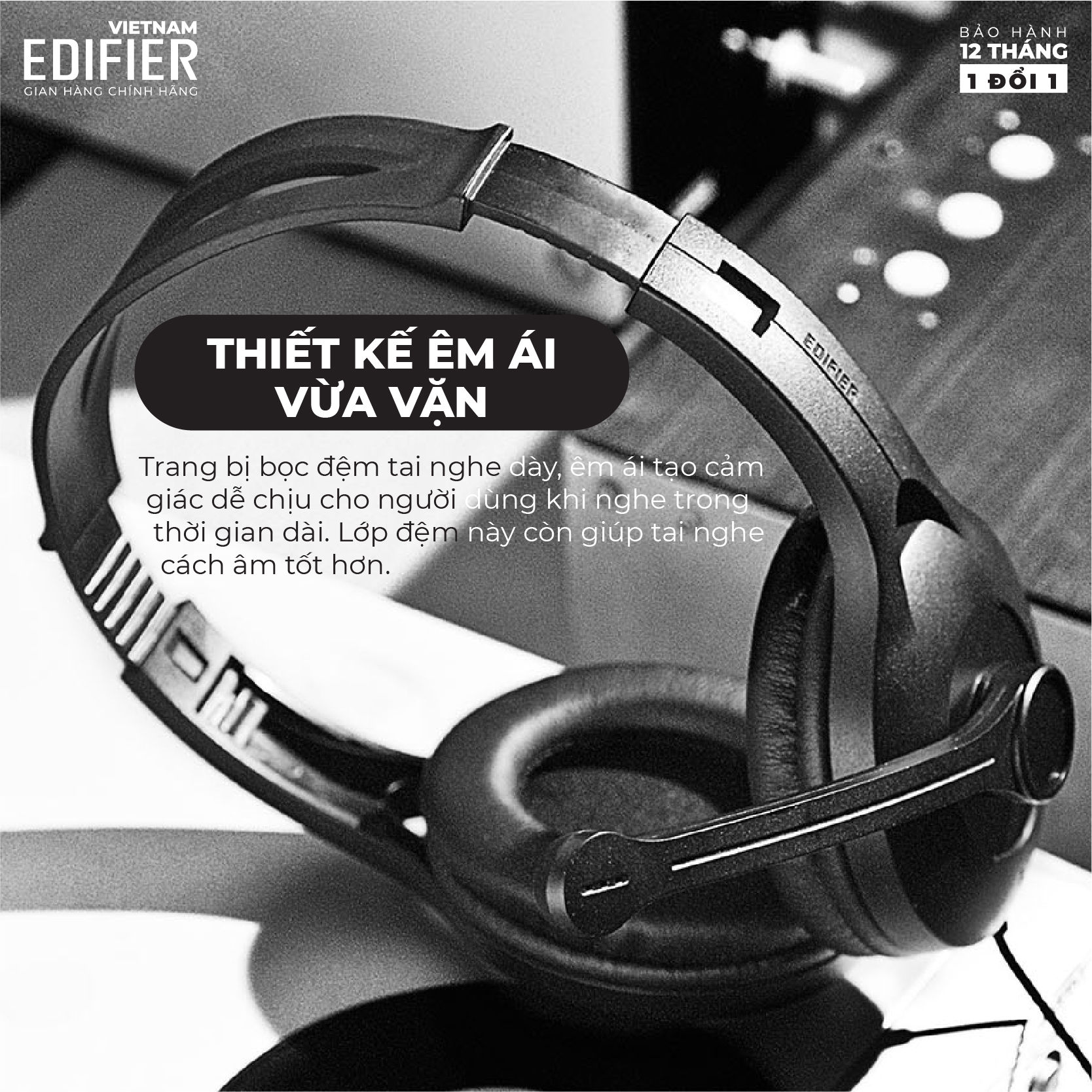 Tự động điều chỉnh băng đô kim loại, thích ứng với các hình dạng đầu khác nhau. Chụp tai bằng da chất lượng cao, che chắn tiếng ồn bên ngoài hiệu quả, chất liệu thân