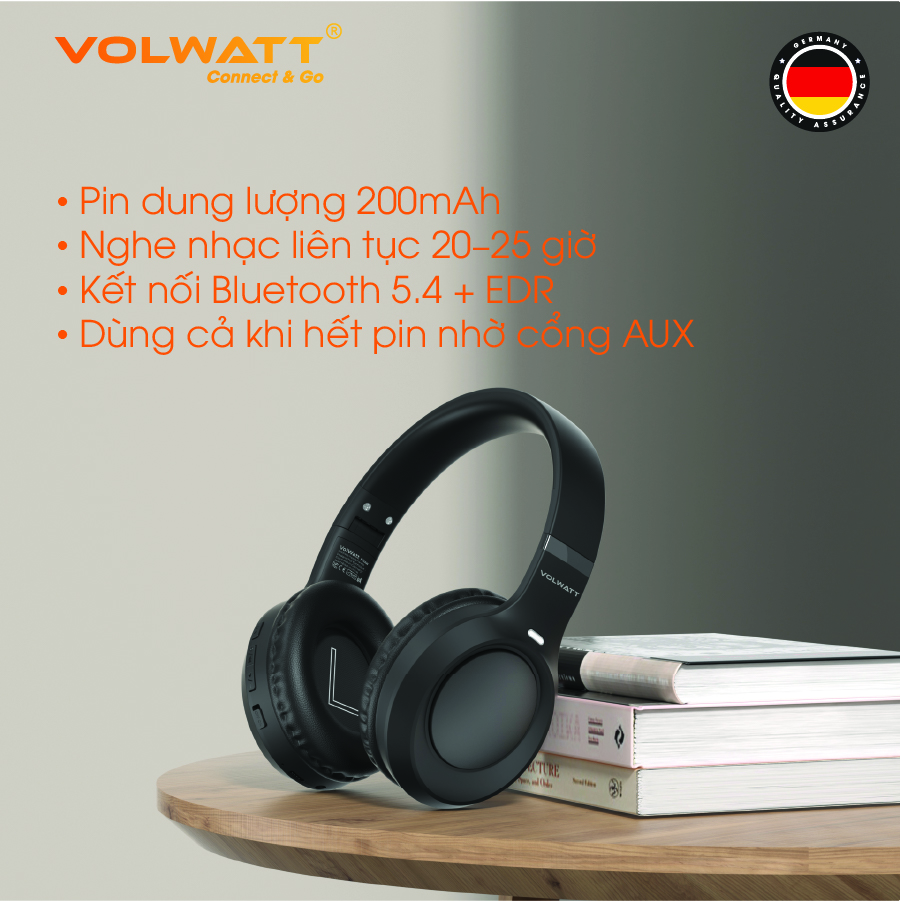 ✨Tai nghe chụp tai không dây Volwatt Flow hàng chính hãng | Bluetooth 5.4 + EDR, AUX 3.5mm, Pin 200mAh 18h, Mic ENC, BH 12 tháng