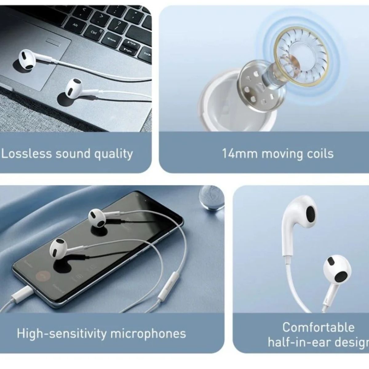 Sản phẩm tai nghe có dây Baseus Encok H06 - Hỗ trợ hiệu ứng âm thanh vòm 8D với 8 lõi âm thanh nổi - Bộ dây 14.2mm cho âm thanh tự nhiền với những