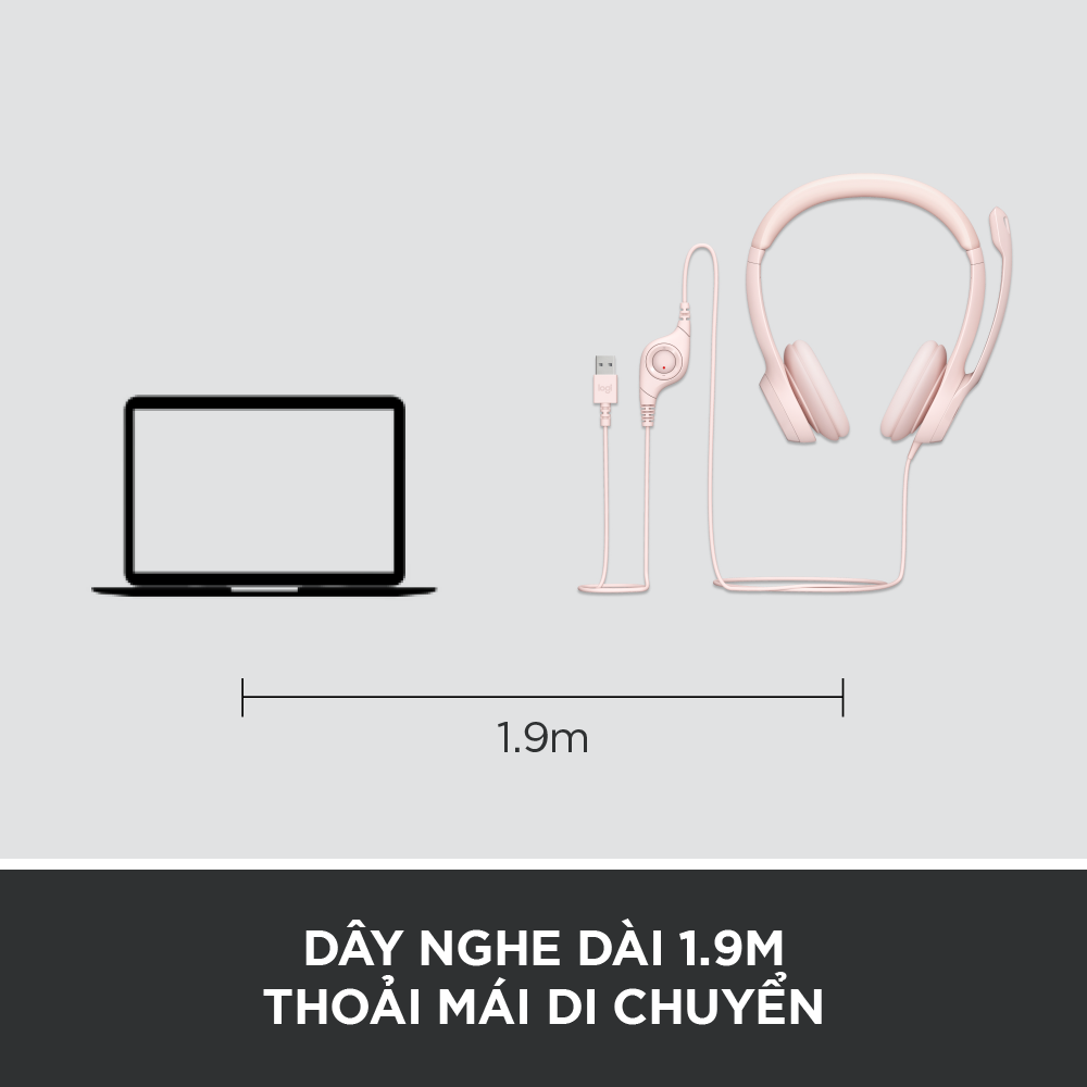 Tai nghe máy tính có mic học online, họp zoom USB Logitech H390