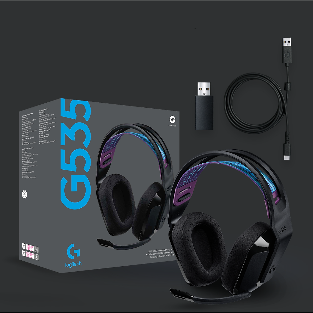 Tai nghe game không dây Lightspeed Logitech G535 - Trọng lượng nhẹ, âm thanh nổi, tương thích PC, PS4, PS5, Mic gấp để tắt tiếng