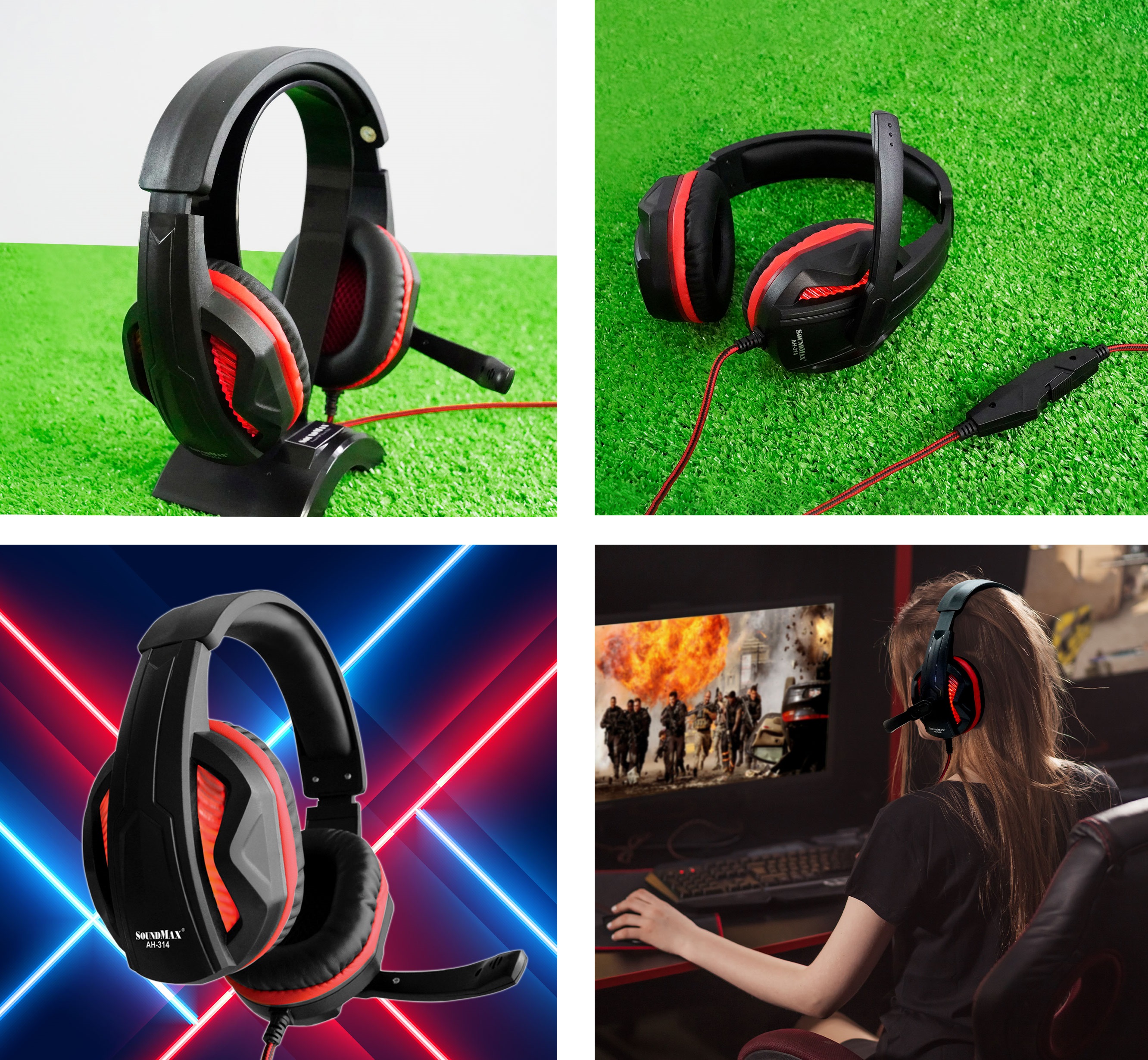 ✨Tai nghe gaming chụp tai 2 chân cắm 3.5mm SOUNDMAX AH314 - Hàng chính hãng