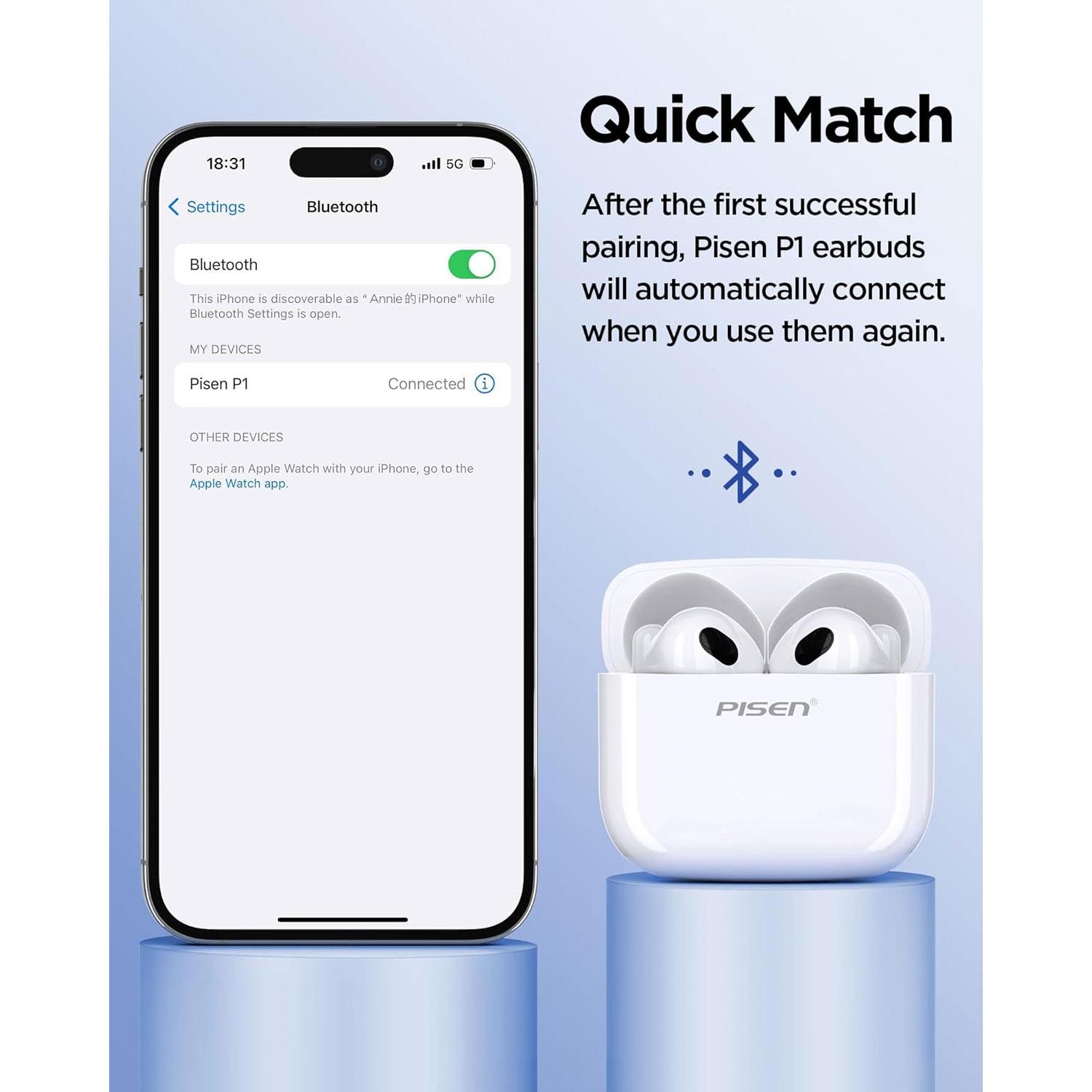 Mua tại TiktokTai Nghe Không Dây True Wireless - Pisen Buds P1 Hoàn toàn không dây, nhẹ như bông Công nghệ Bluetooth 5.3 nhanh hơn gấp đôi so với phiên bản Bluetooth 4.2. Năng suất cũng tăng lên đến 800% so với thế hệ trước đó. Với khả năng này, công nghệ Bluetooth mới sẽ giúp giảm thiểu thời gian kết nối, mang lại trải nghiệm nhanh chóng, mượt mà cho người dùng. THÔNG SỐ KỸ THUẬT: