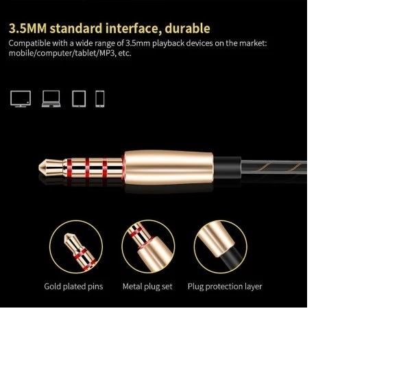 Đầu cắm 3.5mm, phù hợp với hầu hết các điện thoại di động, máy tính bảng, MP3, MP4, v.v.