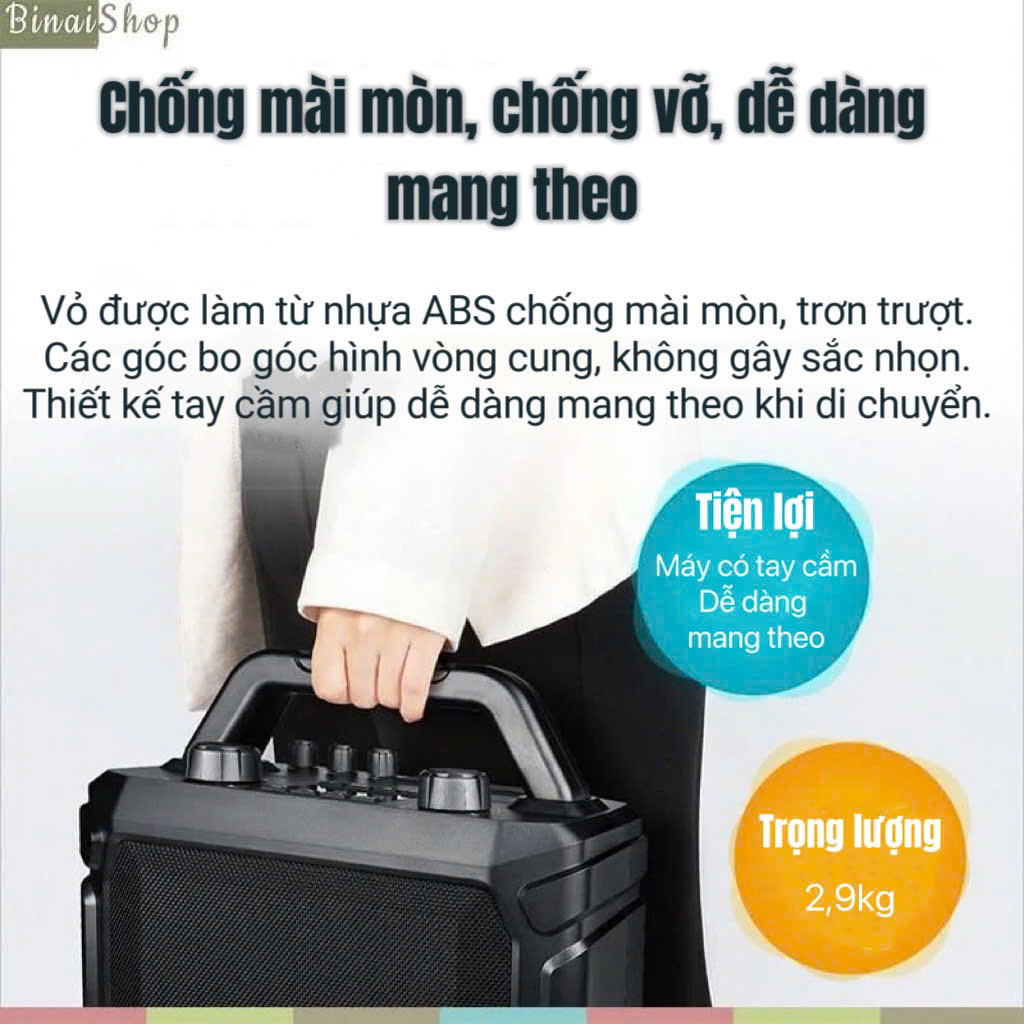 Hỗ trợ: Karaoke/ bluetooth/ FM/ USB/ Thẻ nhớ TF / AUX (từ thiết bị qua loa bằng dây). Công suất đầu ra: 2 x 15W. Bluetooth: 4.1 khoảng cách kết nối lên đến 15m (tối