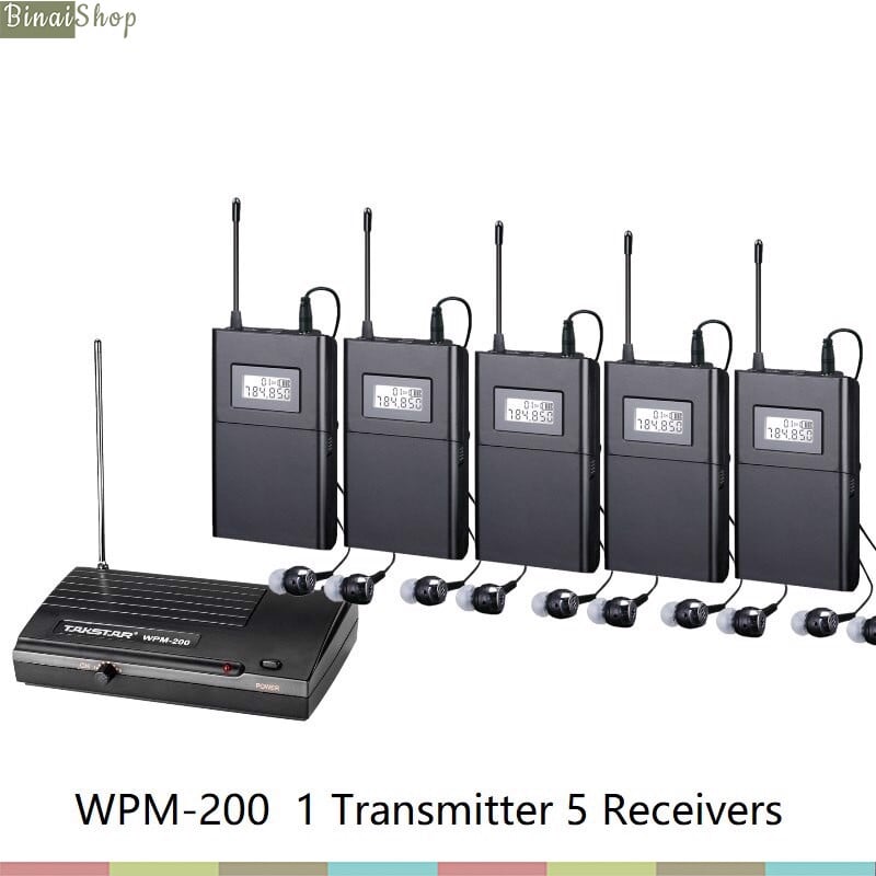 - Takstar WPM-200 Transmitter Frequency Range780-805MHz (780-789MHz)Operating Current80mA ± 10mA Power SupplyDC 12 V/300mAOperating Range50mTransmitting Power ≤ 10dBm Dimension15010535mmWeight175gReceiver Power SupplyDC 3VOperating Current50mA ± 20mAFrequency Response60Hz-18KHzS/N Ratio>50dBSensitivity3uVFrequency Range780-805MHzStereo Crosstalk>42dBDismension 1106220mmWeight90g