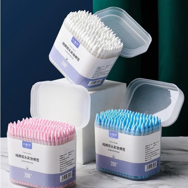 Tăm bông ngoáy tai, trang điểm hai đầu hộp 200 que bông là sản phẩm thiết kế đa chức năng tiện dụng, mềm dẻo.