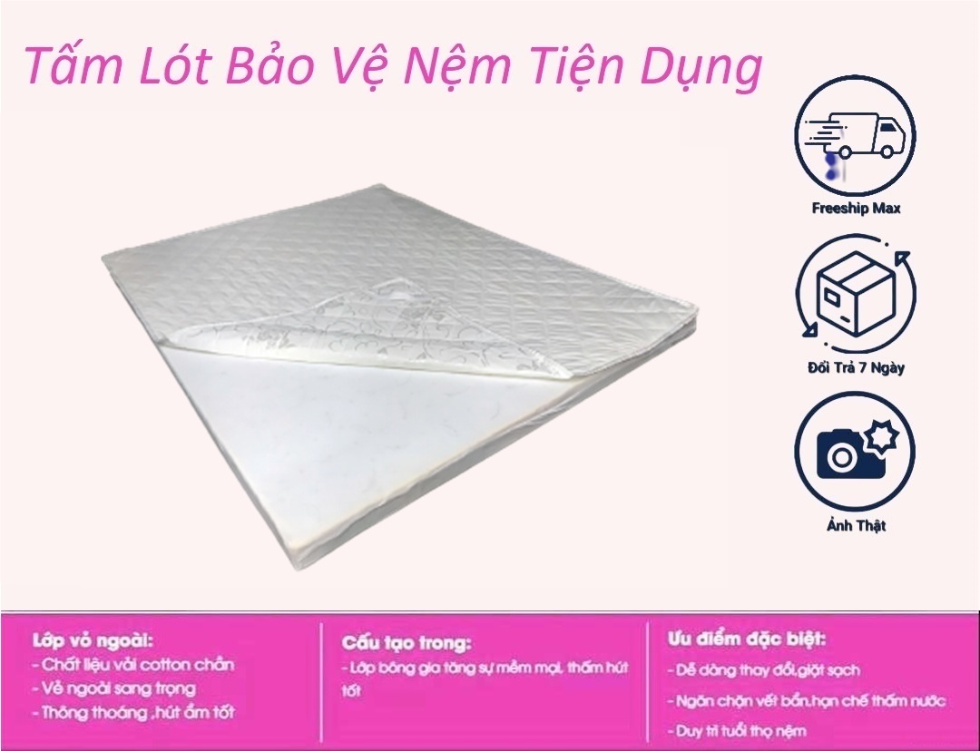 Tấm lót bảo vệ nệm chống thấm 100% giúp bạn giải quyết triệt để vấn đề nước đổ lên nệm, hay bé tè dầm, nôn ói làm nệm bị dơ và có mùi khó chịu.