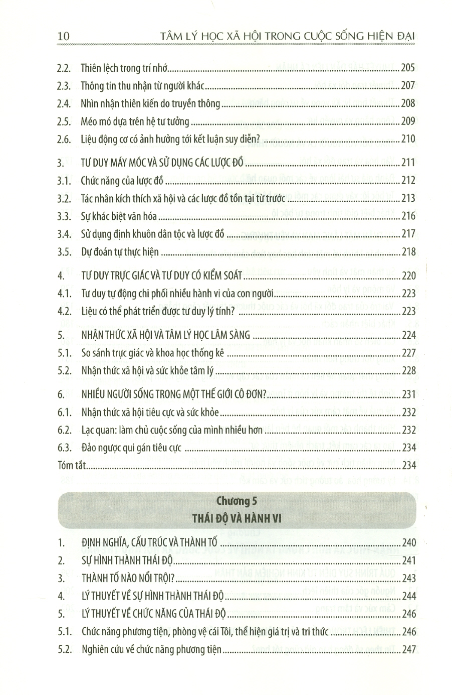 Chương 1: chuyên ngành tâm lý học xã hội Chương 2: Cái tôi nhìn từ góc độ văn hóa và xã hội Chương 3: Sự hấp dẫn và các mối quan hệ: từ gắn bó đầu đợi đến tình yêu lưá đôi Chương 4: Nhận thức xã hội: Chúng ta nghĩ về cuộc sống xã hội như thế nào Chương 5: Thái độ và hành vi Chương 6: Ảnh hưởng nhóm Chương 7: Quá trình ảnh hưởng xã hội: A dua, tuân thủ và phục tùng Chương 8: Thuyêt phục Chương 9: Hành vi liên nhóm thù địch: Định kiến, định khuôn và thù địch Chương 10: Xâm kích: sợ chỉ xuyên suốt nhân loại Chương 11: Vị tha và hành vi ủng hộ xã hội