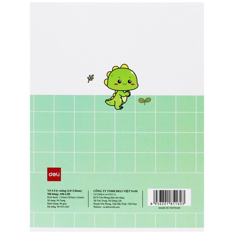 Mua tại TiktokTập Học Sinh - 4 Ô Ly Vuông - 96 Trang 80gsm - Deli CNA96-LID