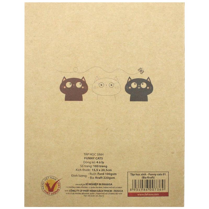 ✨Tập Học Sinh Funny Cats 4 Ô Ly 100 Trang 100gsm - Fahasa 01 (Mẫu Màu Giao Ngẫu Nhiên)