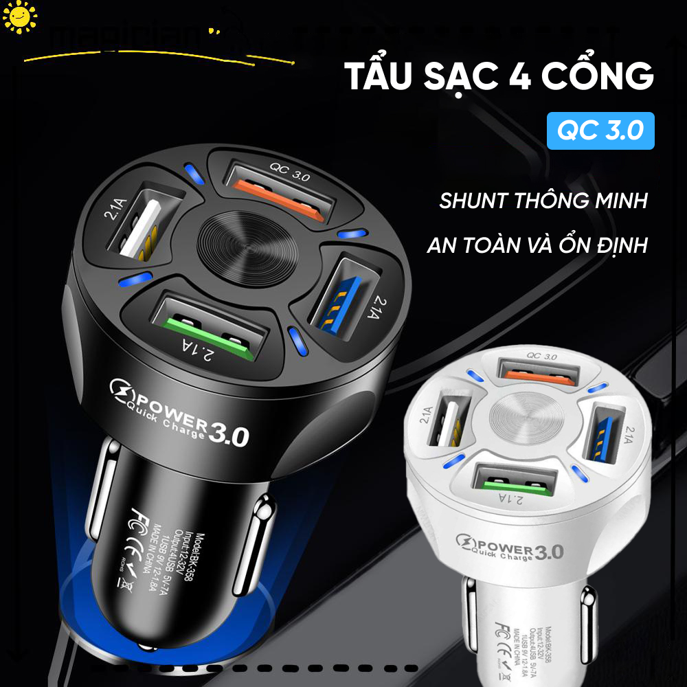 Tẩu Sạc Nhanh Thông Minh Quick Charge 3.0 THÔNG TIN SẢN PHẨM: Tên: Bộ sạc ô tô 4USB (sạc nhanh QC3.0) Thông số đầu vào: 12V-24V Cổng USB 3.1A hiện đại, shunt thông minh Kích