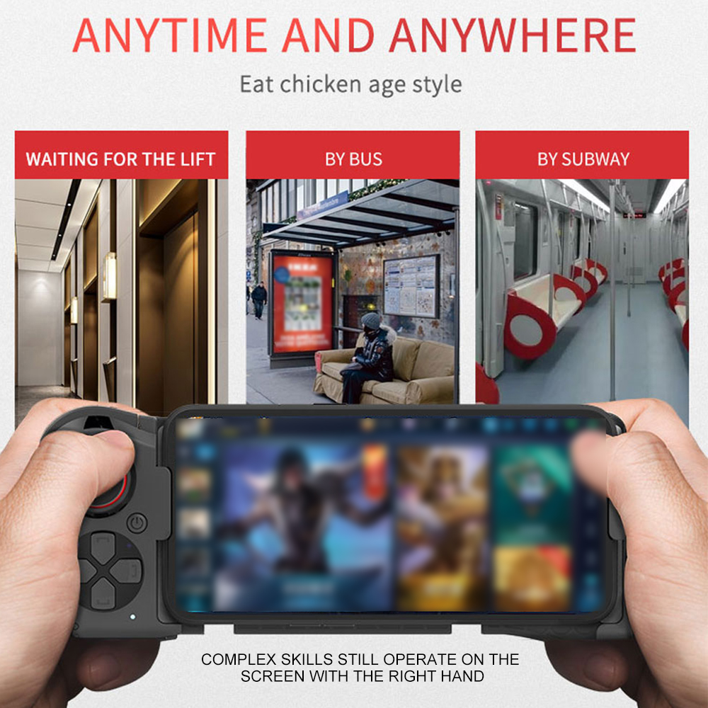 This multi-functional game handle can be connected to the mobile phone by BT wireless. It is comfortable to hold, scalable, and compatible with various sizes of mobile phones. It is convenient to use and allows