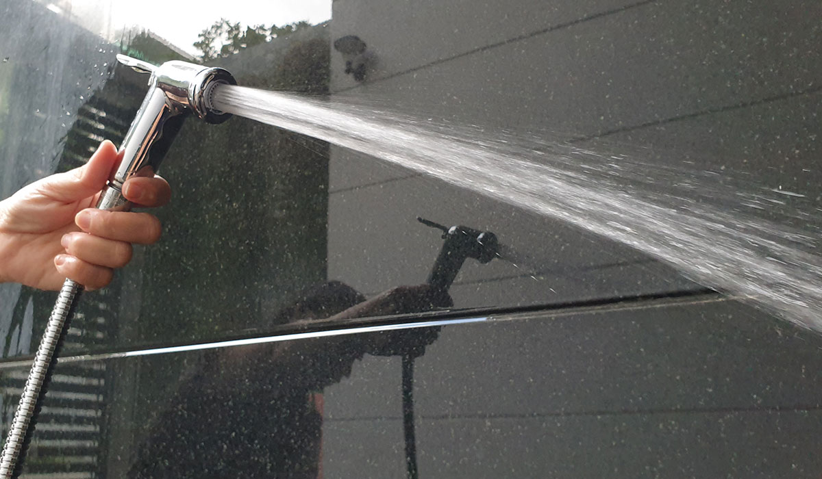 Tay nhấn của vòi xịt được thiết kế với chức năng rảnh tay, không cần nhấn giữ khi sử dụng. Chỉ cần gạt ngang, bạn có thể rảnh tay làm những công việc khác