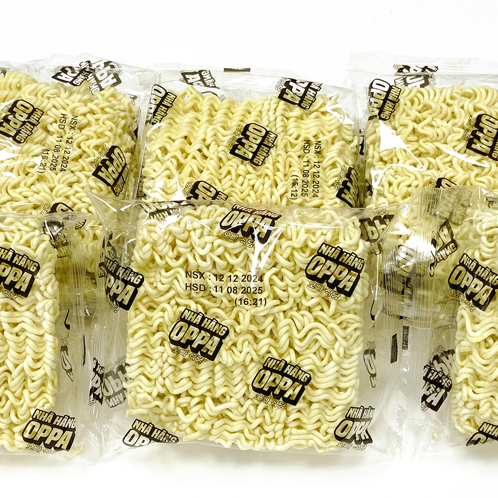 Mì không gói gia vị OPPA Ottogi được làm từ bột mì chất lượng cao, sợi mì vàng óng, dai mềm và có độ đàn hồi tuyệt vời sau khi nấu chín. Đây là loại mì lý tưởng để kết hợp với các nguyên liệu và gia vị theo ý thích của người dùng, giúp tạo ra những món ăn độc đáo và đậm chất cá nhân. Bạn có thể sử dụng mì này để chế biến nhiều món ăn như mì xào, mì nước, lẩu mì, hoặc các món ăn sáng tạo khác mà không bị giới hạn bởi gói gia vị cố định.