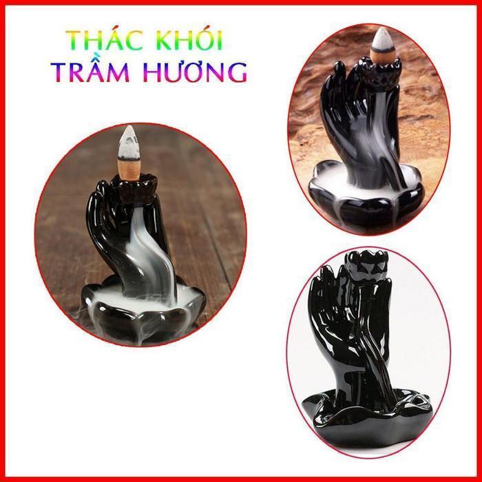 - Thác Khói Trầm Hương Bàn Tay Phật cao cấp khi kết hợp với nhang trầm nụ là một tuyệt tác nghệ thuật, với những loại gỗ bình thường khi đốt khói sẽ bay lên trên nhưng với loại Trầm Hương thì khói nặng hơn và chìm xuống dưới thành dòng như thác nước.- Thác khói trầm hương làm bằng gốm sứ tráng men, là một sản phẩm dùng để đốt nhang trầm nụ. Khi đốt sẽ tạo khói nhưng điều đặc biệt là khói sẽ không bay lên như bình thường mà theo rãnh đã được tạo sẵn từ thác khói chảy ngược từ trên cao như dòng thác huyền ảo và cứ thế chảy cho đến khi hết hương trầm.- Chính vì thế, có thể nói Thác Khói Trầm Hương khi kết hợp với nhang trầm nụ là một tuyệt tác nghệ thuật, với những loại gỗ bình thường khi đốt khói sẽ bay lên trên nhưng với loại Trầm Hương thì khói nặng hơn và chìm xuống dưới thành dòng như thác nước.- Đây là một sản phẩm khác biệt trong việc đốt nhang trầm nụ , đồng thời tạo một nên một sản phẩm giải trí đẹp mắt cho người sử dụng. Khi rảnh rỗi ngoài việc đọc báo, xem tivi, thì chúng ta có thể ngồi ngắm dòng chảy của khói trong thác rất đẹp mắt và sẽ cảm thấy thích thú biết bao. Có lúc thấy giống như thác nước thu nhỏ, có lúc lại thấy giống như đám mây vây quanh thần phật mà ta vẫn thấy trong các bộ phim. Khi ngắm nhìn dòng chảy nhẹ nhàng của làn khói dọc theo thác như một dải lụa mềm mại sẽ thấy lòng mình như tĩnh lại thư thái biết bao.- Kích thước :8*10 cm#thackhoitramhuong #phongthuy #tramhuong #bantayphat