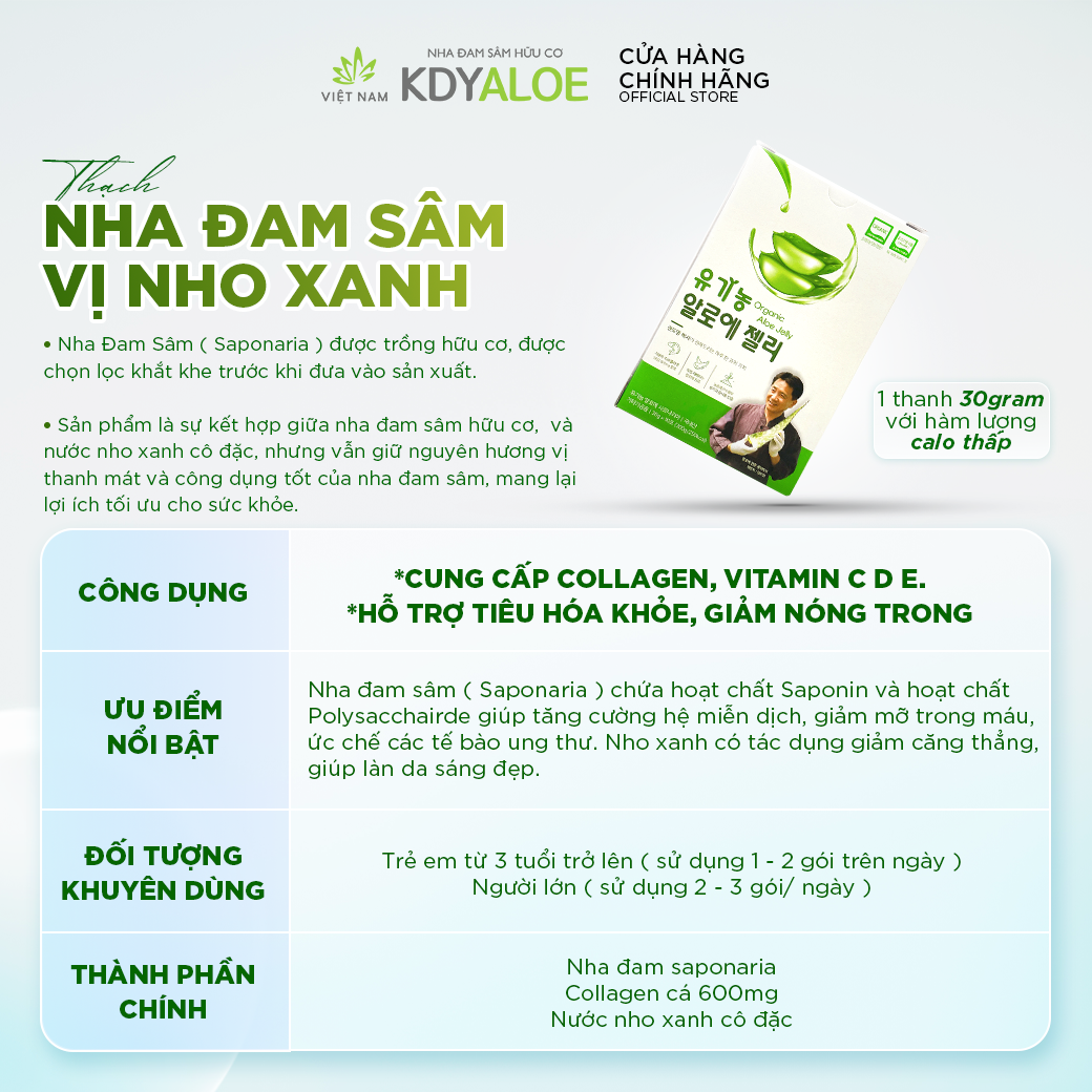 ✨THẠCH NHA ĐAM SÂM NHO XANH HỮU CƠ KDY ALOE Hỗ Trợ Tiêu Hóa