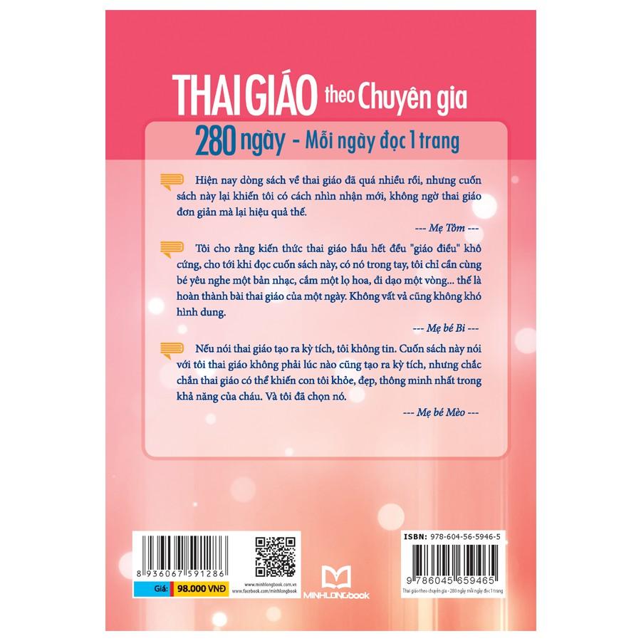Mang thai là giai đoạn vô cùng ý nghĩa, là hành trình quan trọng trong cuộc đời đối với người phụ nữ. Tiến hành thai giáo là một công trình vô cùng vĩ đại. Glenn Doman - Viện trưởng Viện Nghiên cứu Phát triển Tiềm năng con người Philadelphia (Mỹ) đã nói: Mỗi đứa trẻ bình thường khi chào đời đều mang trong mình tiềm năng thiên tài như Shakespeare, Mozart, Edison, E Mà tiềm năng thiên tài này đã có sẵn kể từ ngày người mẹ mang thai bé rồi. Cuốn sách “thai giáo theo chuyên gia, 280 ngày, mỗi ngày đọc một trang” đề cập đến các phương pháp tạo ra các kích thích phù hợp cho bé yêu ngay từ khi còn trong bụng mẹ.