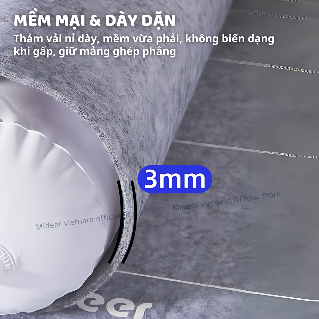 - MỀM MẠI & DÀY DẶN Thảm được làm từ vải nỉ dày, có độ mềm mại vừa phải, không bị biến dạng khi gấp và không để lại nếp gấp sau khi cuộn lại, đảm bảo mảng ghép luôn phẳng phiu. .