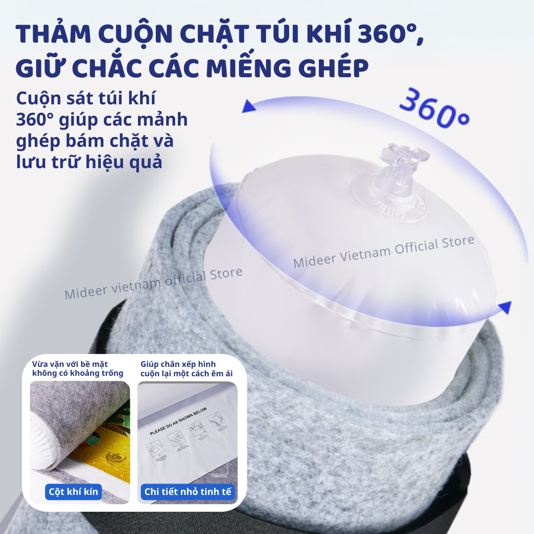 - THẢM CUỘN CHẶT TÚI KHÍ 360°, GIỮ CHẮC CÁC MIẾNG GHÉP Thảm dày và có độ ma sát cao, đồng thời cuộn sát túi khí 360° giúp tăng khả năng bám dính các mảnh ghép, lưu trữ tốt hơn.
