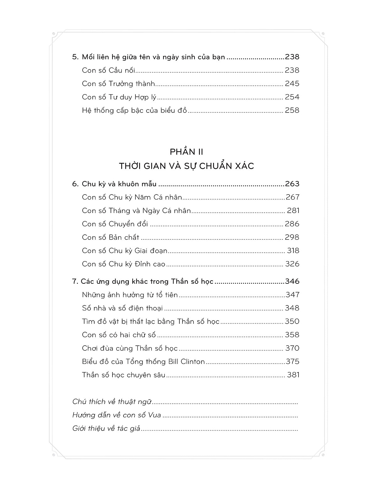 Tác giả Hans Decoz Người Dịch Từ Uyển Linh NXB NXB Thanh Niên Năm XB 2021 Trọng lượng (gr) 400 Kích Thước Bao Bì 24 x 16 cm Số trang 392 Hình thức Bìa Mềm Ngày sinh, ngày tốt nghiệp, số nhà, số đăng ký xe, số sổ hộ khẩu, số căn cước công dâ vô vàn con số hiện diện xung quanh chúng ta mỗi ngày, và có một vài con số nhất định liên tục lặp lại. Bạn đã từng chú ý đến điều này chưa? Sự xuất hiện của các con số có thể không chỉ là điều ngẫu nhiên như bạn mặc định. Và bạn có từng nghĩ ngôn ngữ số học có thể là chìa khóa giải mã những câu hỏi về vận mệnh và ý nghĩa cuộc sống luôn thường trực trong mỗi chúng ta chưa? Những con số chứa đựng ý nghĩa sâu xa và có thể ảnh hưởng đến chúng ta nhiều hơn chúng ta vẫn nghĩ. Nếu bạn đã từng băn khoăn bạn là ai và tại sao lại sở hữu những tính cách như hiện tại; nếu bạn đã từng thắc mắc về con đường tương lai và vận mệnh của bản thân, cuốn sách này có thể cho bạn lời giải đáp hợp lý. Nếu bạn đang đau đáu về con đường sự nghiệp và mông lung không biết bản thân thực sự thích gì ; nếu bạn vẫn đang đi tìm câu hỏi về niềm đam mê và khao khát thực sự của bản thân, cuốn sách này có thể cho thể cho câu trả lời thuyết phục. Trong hành trình tìm kiếm con đường riêng cho mình, khám phá vận mệnh của bạn thân, sự hiểu biết về Thần số học, hiểu biết về ý nghĩa và sự huyền nhiệm của những con số có thể giúp bạn xóa tan màn sương mờ ảo, tránh được những trầy trật, vất ngã, hay thậm chí là lạc lối, để tù đó tự vạch ra một hướng phù hợp, từ đó sống một cách trọn vẹn, tận hưởng niềm vui và ý nghĩa của cuộc sống. Những trích dẫn tâm đắc - Nghệ thuật của thần số học nằm ở bản chất của chúng, sự rung cảm, cách chúng được sử dụng để giúp bạn thấu hiểu bản thân và thế giới xung quanh mình. Có lẽ bạn chưa bao giờ nghĩ rằng con số lại có tính cách riêng nhưng nếu chú ý thì bạn sẽ thấy trong chúng ta sẽ có người ưa thích một vài con số nhất định hơn những con số khác. Chúng ta đưa ra lựa chọn này vì cảm thấy bị thu hút bởi một loại trực giác đối với bản chất hay tính cách của con số đó. - Câu hỏi quan trọng nhất mà tất cả chúng ta cần phải trả lời đó là vũ trụ có phải là một nơi thân thiện hay không - Ngẫu nhiên là trạng thái không tồn tại một trật tự hay ý nghĩa sâu xa nào. Điều đáng sợ là vũ trụ này đầy rẫy các sự kiện xảy ra ngẫu nhiên, và không có một luật lệ nào chi phối nó. Trên thực tế, chúng ta thấy rằng mệnh đề này là không đúng, vì khoa học, vật lý, toán học, sinh học, thiên văn học đều dựa trên một trật tự và nó còn có thể dự đoán được một số quy luật của tự nhiên. Hơn nữa nếu vũ trụ bị cai trị bởi những sự kiện ngẫu nhiên không lường trước thì sẽ không có cấu trúc bền vững nào dành cho nó. Ngược lại, vũ trụ duy trì hình thái, cấu trúc, quy luật theo một cách chính xác và có trật tự.