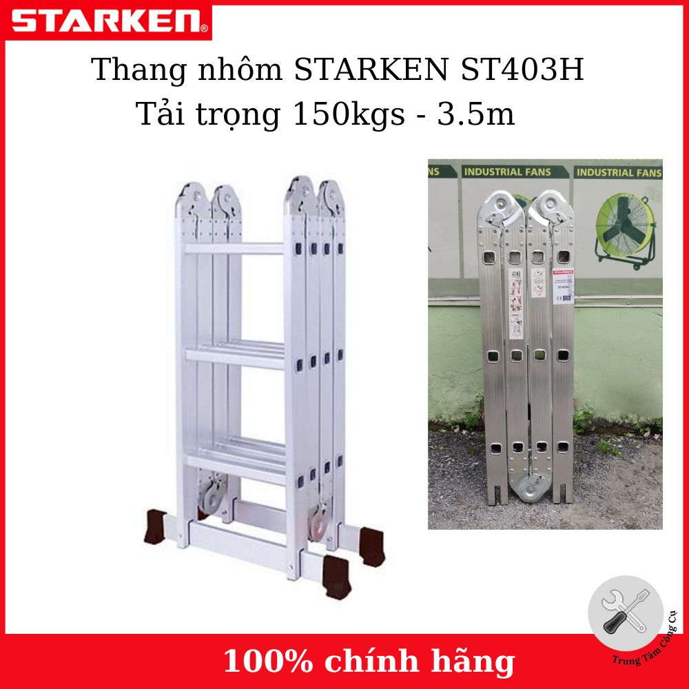 Thang nhôm 4 đoạn STARKEN ST403H Thang nhôm 4 đoạn STARKEN ST403H được làm từ hợp kim nhôm rất chắc chắn, trọng tải thang lên tới 150kgs.Sản phẩm đạt tiêu chuẩn EN131 về độ an
