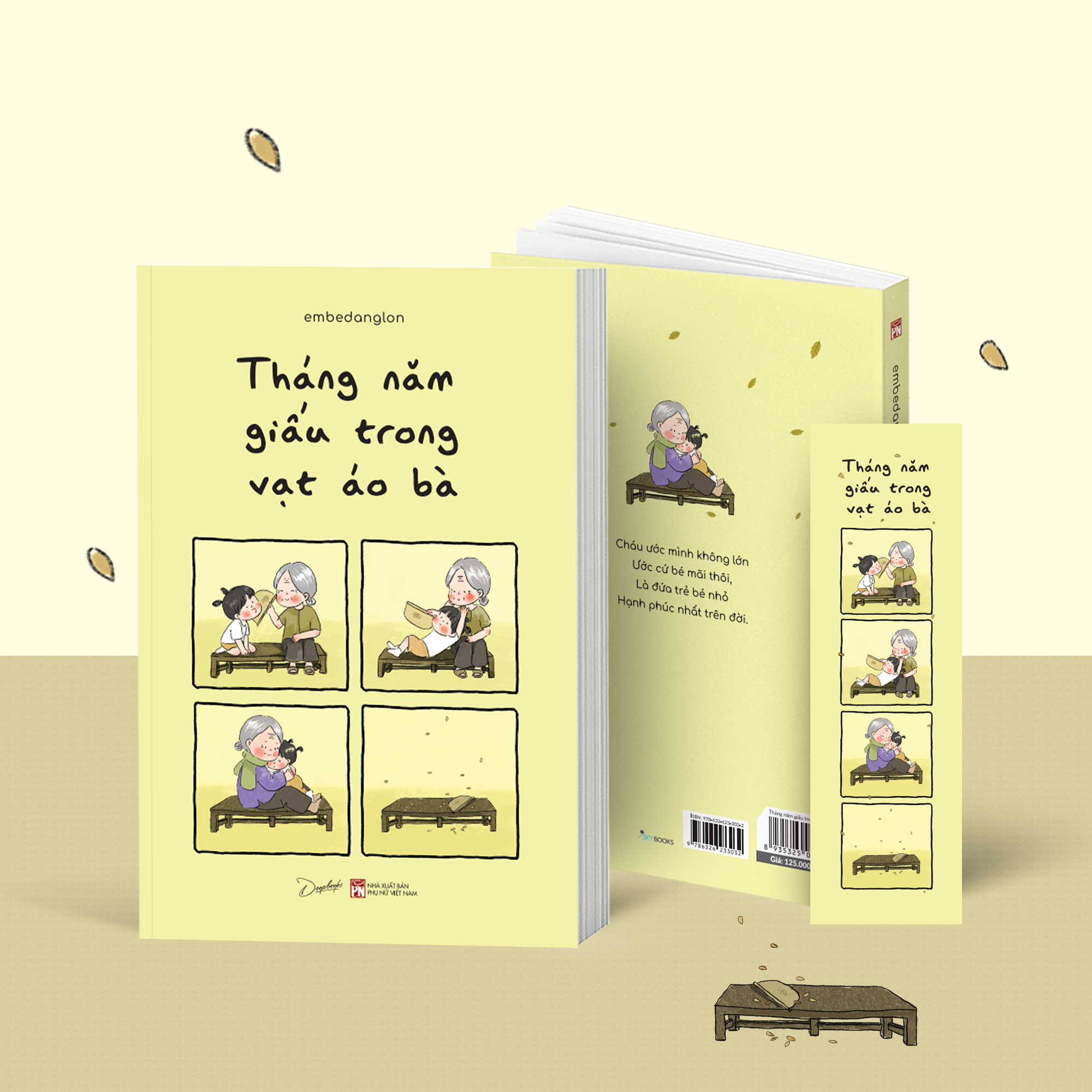 “Cháu ước mình không lớn Ước cứ bé mãi thôi, Là đứa trẻ bé nhỏ Hạnh phúc nhất trên đời.” “Tháng năm giấu trong vạt áo bà” là cuốn sách tranh khẽ mở ra cánh cửa trở về tuổi thơ - nơi ta từng ước mình mãi không lớn, để được sồng hoài trong vòng tay chở che của gia đình. Trong tác phẩm này, tác giả embedanglon không chỉ gửi gắm những dòng chữ mộc mạc mà còn tự tay vẽ nên những bức minh họa dung dị và thân thương. Mỗi bức vẽ như một mảnh ghép dịu dàng về hình bóng những người đã che chở và nuôi dưỡng ta trong cả thuở ấu thơ: là làn khói bếp bảng lảng, mùi nắng đồng thơm, tiếng ru à ơi ngân trong vạt áo bà. Đâu đó là chiếc kẹo ngọt, con tôm bóc sẵn ông dành phần riêng cho đứa cháu nhỏ; là bữa cơm nhà ngọt lành mẹ nấu, hay cái mùng, chiếc quạt bố lặng lẽ sắp sẵn. Tất cả kết lại thành dòng chảy yêu thương của gia đình, âm thầm, giản dị nhưng đủ để nâng đỡ ta vững vàng suốt một đời. Và chính từ những mảnh ghép ấy, tác giả còn gửi gắm lời động viên tích cực đến những “đứa trẻ đã lớn” - những người đang ngày ngày miệt mài phấn đấu, chỉ mong mang về điều ngọt ngào nhất cho cha mẹ, ông bà. Nhưng đôi khi, trong guồng quay tất bật ấy, ta dễ quên mất rằng điều quý giá nhất không phải là những thành quả xa xôi, mà chính là sự hiện diện bên gia đình. Bởi tình thương gia đình luôn là hành trang thiêng liêng nhất trong đời. Dù bận rộn đến đâu, hãy một lần chậm lại để trở về, ngồi bên mâm cơm quen thuộc, nghe một câu hỏi han giản dị, hay chỉ đơn giản là ôn lại những kỷ niệm ấu thơ bên những người thân yêu. Những khoảnh khắc ấy tưởng chừng bình thường, nhưng lại hữu hạn và một khi đã trôi qua sẽ chẳng thể nào lấy lại được. Và chính khi ta biết trân trọng từng giây phút ấy, ta mới nhận ra ký ức về bà, về mái nhà, về tuổi thơ không chỉ là nỗi nhớ, mà còn là nguồn sức mạnh diệu kỳ tiếp sức cho ta trong những ngày đời phủ bão giông. “Tháng năm giấu trong vạt áo bà” khép lại bằng lời nhắn ấm áp của tác giả embedanglon: “Cuối cùng, sau tất cả, mong chúng ta sẽ luôn bình an và mạnh khỏe trở về nhà mỗi ngày.” Và có lẽ đó cũng chính là ước nguyện sâu thẳm trong tim mỗi người: dù thành công hay thất bại, ta vẫn mong còn nghe tiếng gọi của người thân, vẫn mong có một nơi chốn để trở về, vẫn mong được nương náu trong vạt áo bình yên của bà… để thấy lòng mình bé nhỏ, an yên, và hạnh phúc như thuở ban đầu.