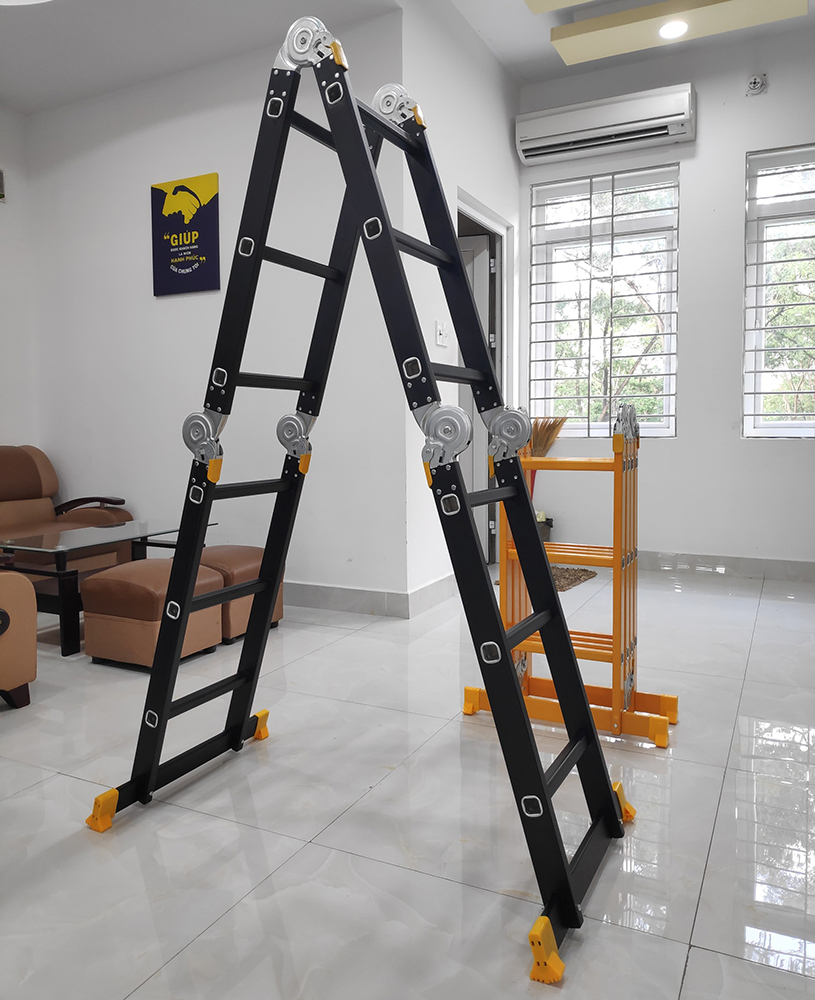 Cận cảnh mẫu Thang nhôm gấp 4 đoạn SUMIKA SKM203 NEW, 14 tư thế