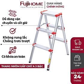 ✨Thang nhôm gấp chữ A Fujihome DL203, 3 bậc cao 0.76 mét - Hàng chính hãng