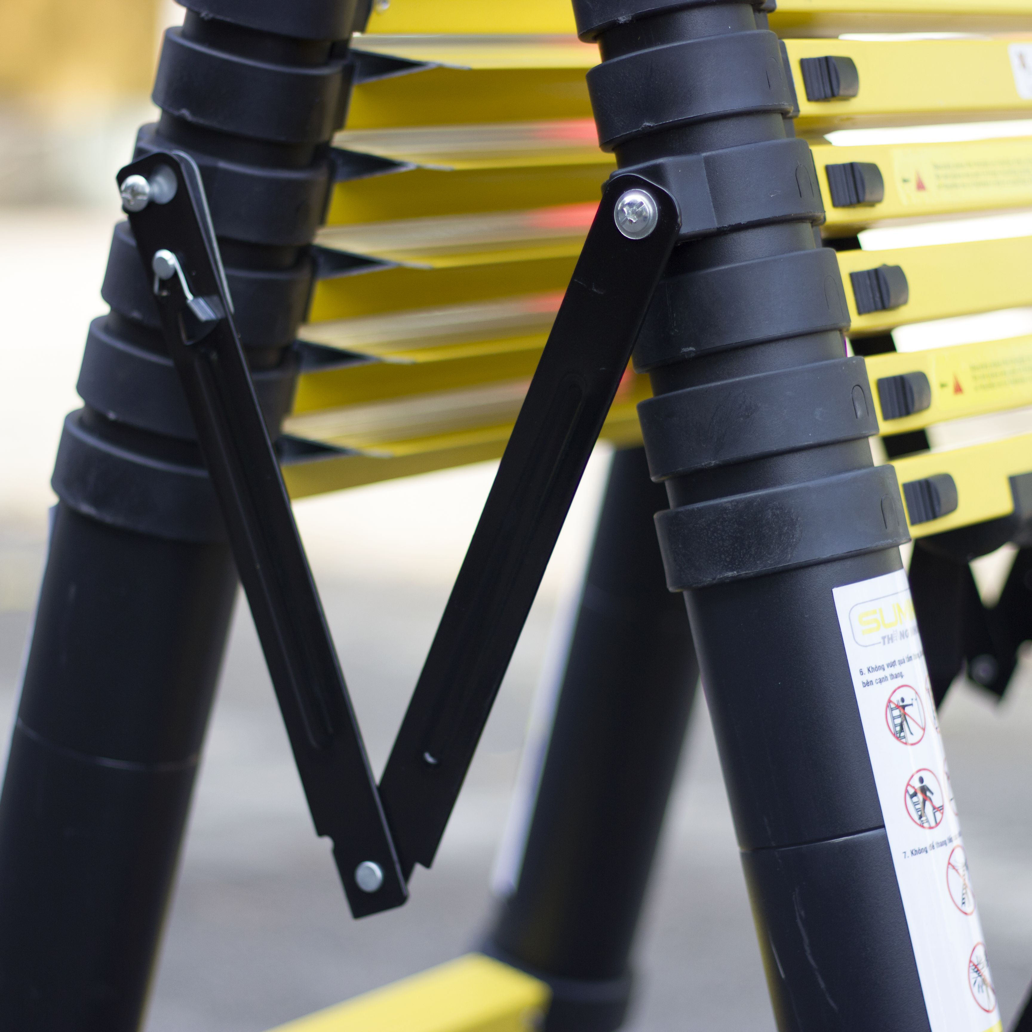 Thang nhôm rút đôi - Sơn tĩnh điện màu đen và màu vàng.